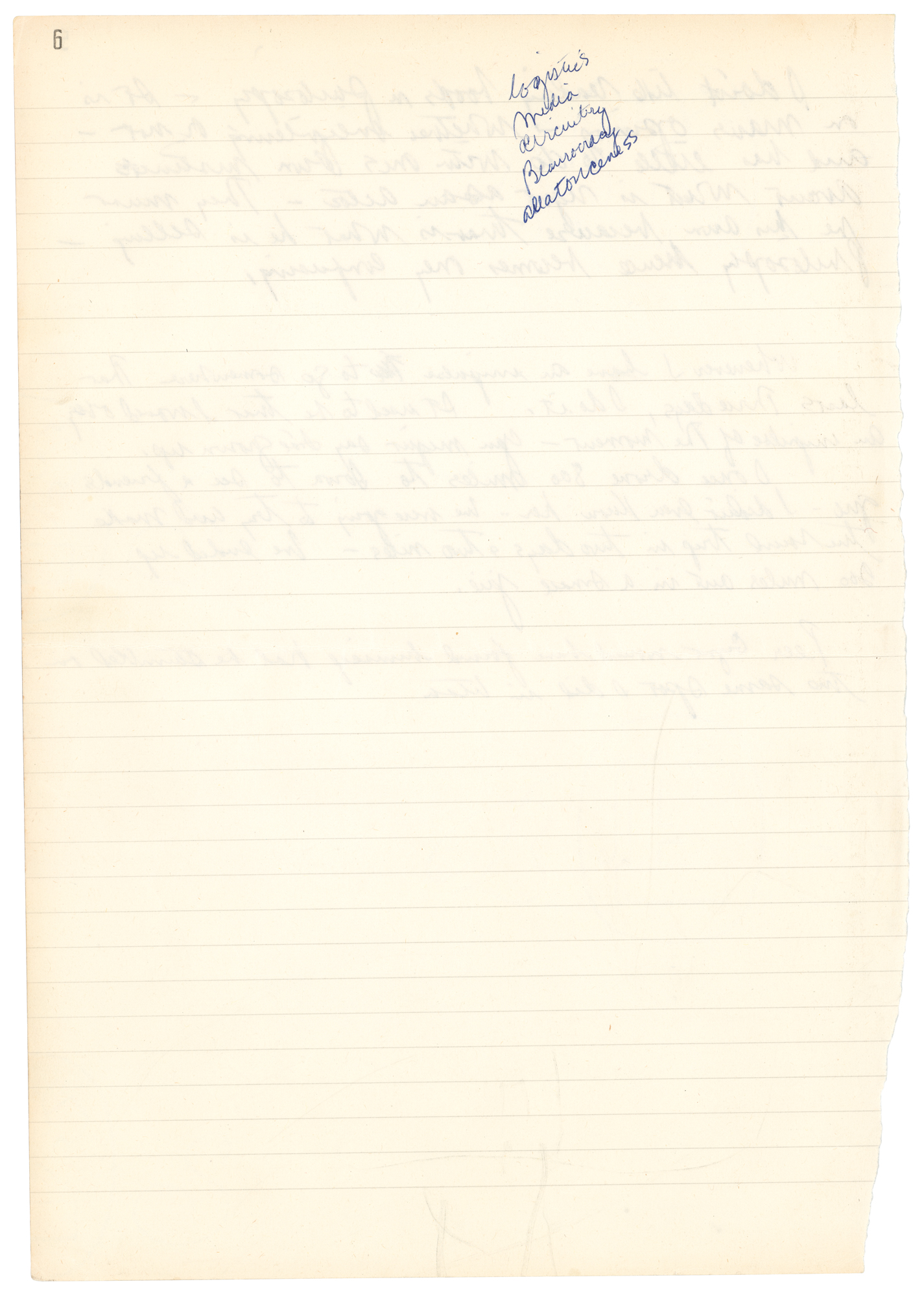 Handwritten manuscript by Robert Redford, unsigned, seven total pages, 8.25 x 11.75, no date (circa mid-to-late 1960s), containing the actor’s thoughts and feelings on several intimate topics, including himself, friends, children, drugs, health and exercise, the news media, political causes, typecasting, acting, and philosophy. The manuscript concludes with a section containing Redford’s notes on the teachings of Canadian philosopher Marshall McLuhan. The manuscript, penned in blue and black ballpoint, begins with “Things about myself,” which contains several paragraphs of self-reflection, in part: