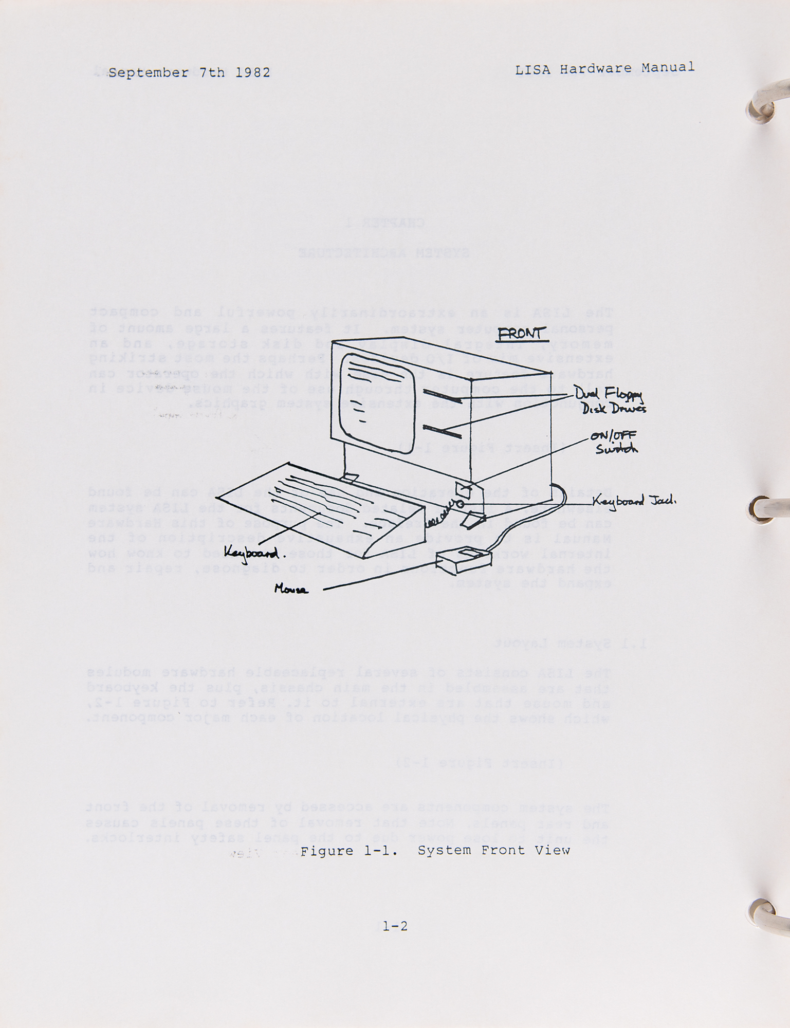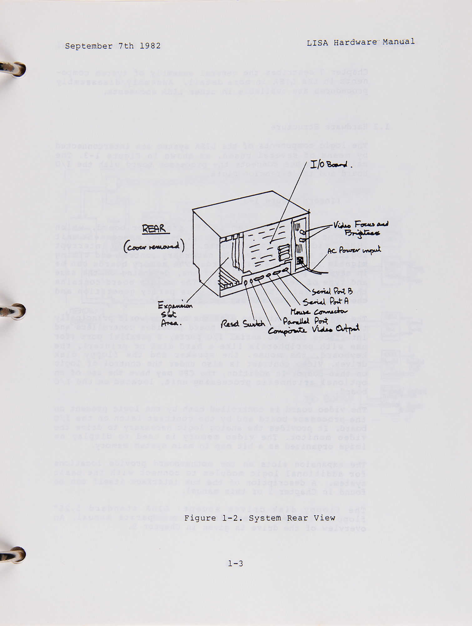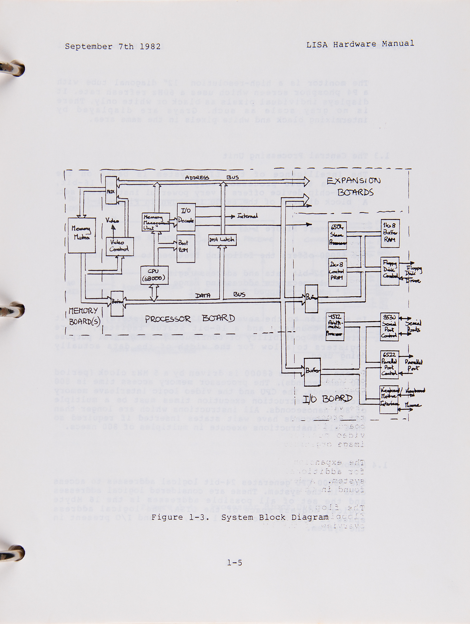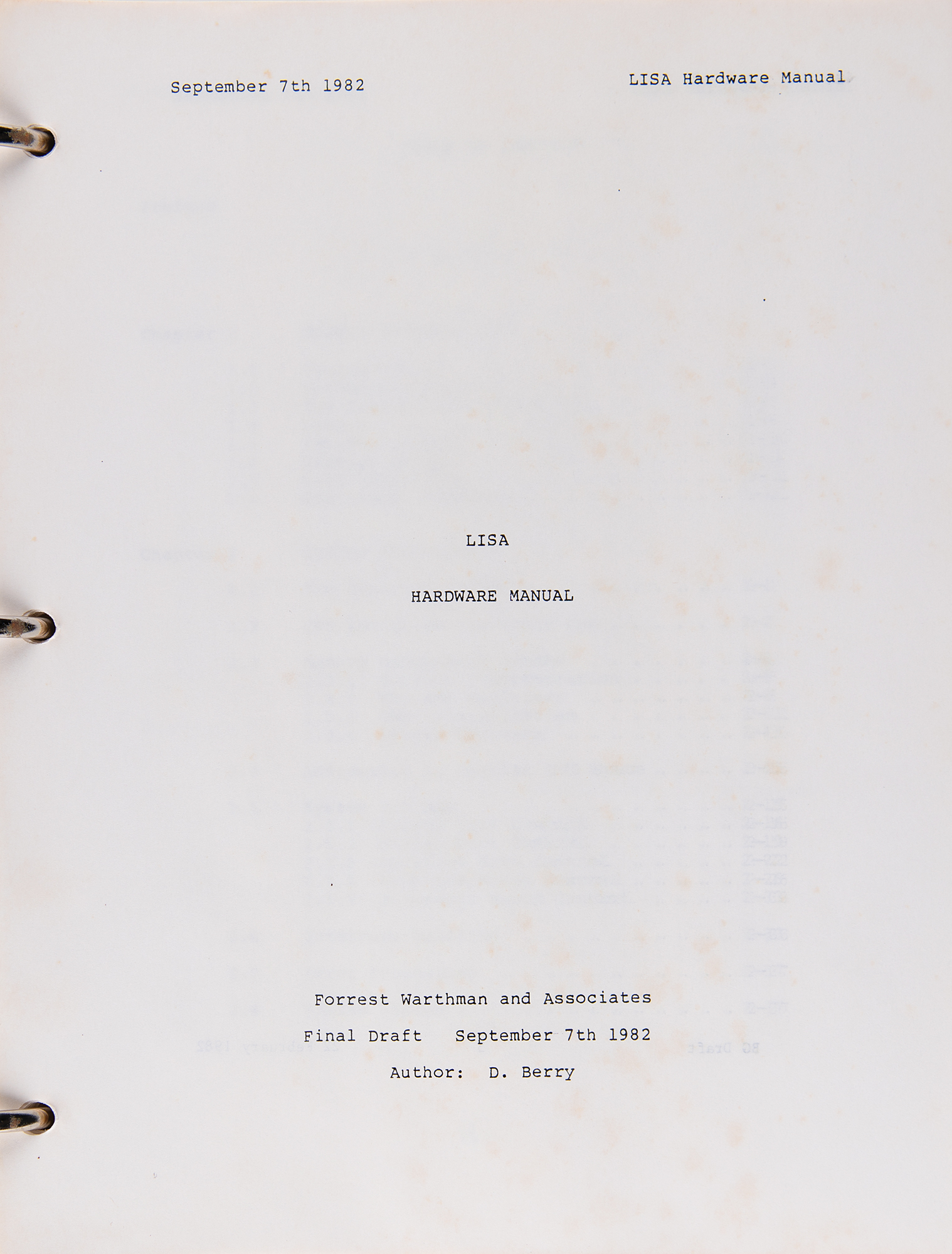 The final draft “LISA Hardware Manual,” 260 pages, 8.5 x 11, September 7, 1982, prepared for Forrest Warthman and Associates by D. Berry, contains two sections and 11 chapters: System Architecture, System Programming, System Layout, The Processor Board, The Memory Boards, The I/O Board, The Video Board, Operator Interfaces, Floppy Disk Drives, Power Supply, and System Assemblies. Accompaniments include: an ‘Alpha draft’ for a ‘Device Drivers Manual’ from October 1983, with chapters for “Overview of the Driver Environment,” “How the OS Supports Device Drivers,” “File System and Operating System Requirements,” “Configuration Requirements,” and “How to Make a Device Driver”; and a “Pascal Reference Manual for the Lisa” from 1983, which contains chapters for “Tokens and Constants,” “Blocks, Locality, and Scope,” “Data Types,” “Variables,” “Expressions,” “Statements,” “Procedures and Functions,” “Programs,” “Units,” “Input/Output,” “Standard Procedures and Functions,” and “The Compiler.” Both manuals are housed in an original binder for “The Controller: General Business System,” small business management and accounting software issued by Apple Computer and the Dakin5 Corporation in 1979 for the Apple II personal computer. In overall fine condition, with vertical folds to the schematics and some staining to binder and its opening pages.