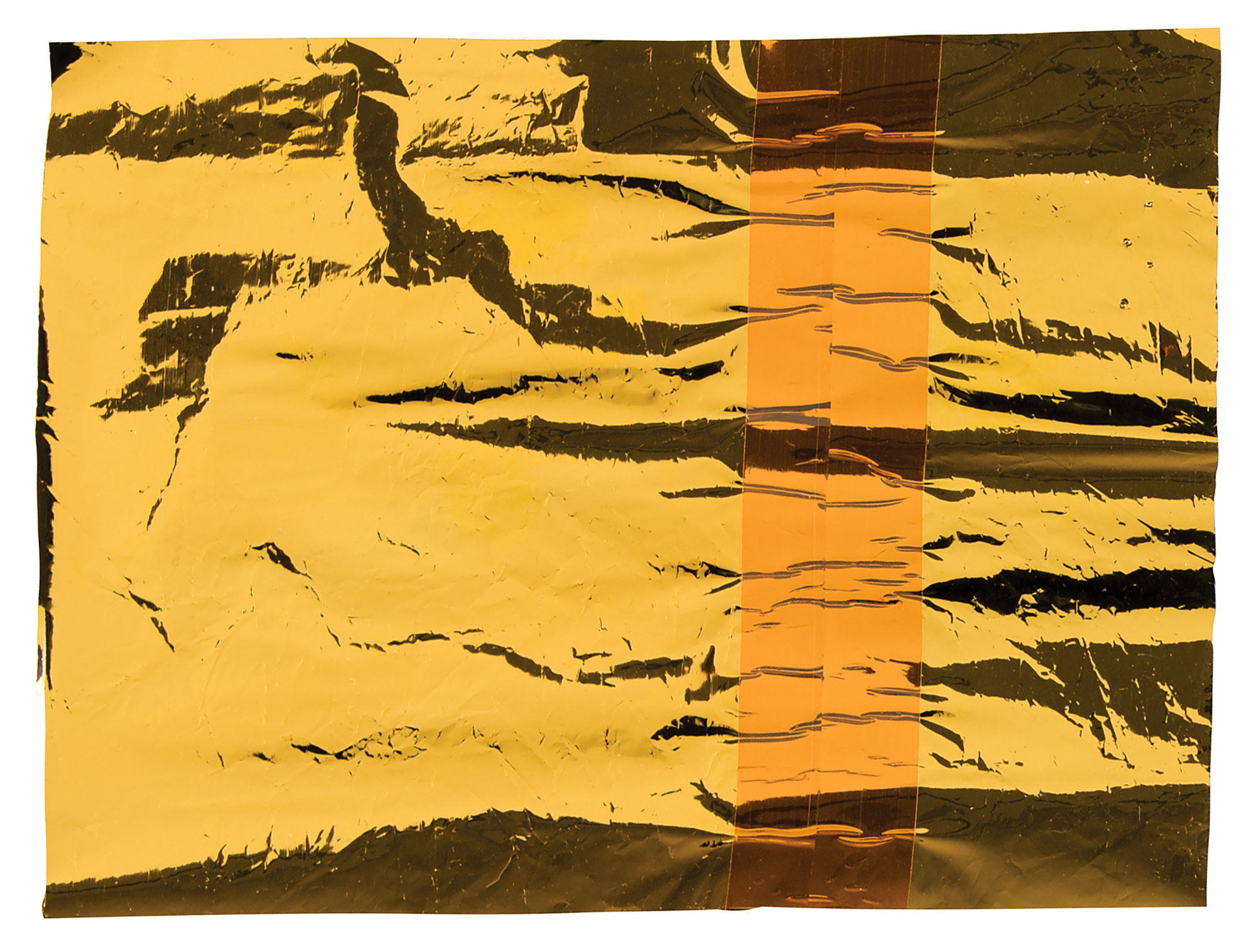 Large 4.75 x 6.5 swatch of Kapton foil removed from the descent stage of the Lunar Module Eagle mere days before the historic launch of the Apollo 11 mission. In fine condition.