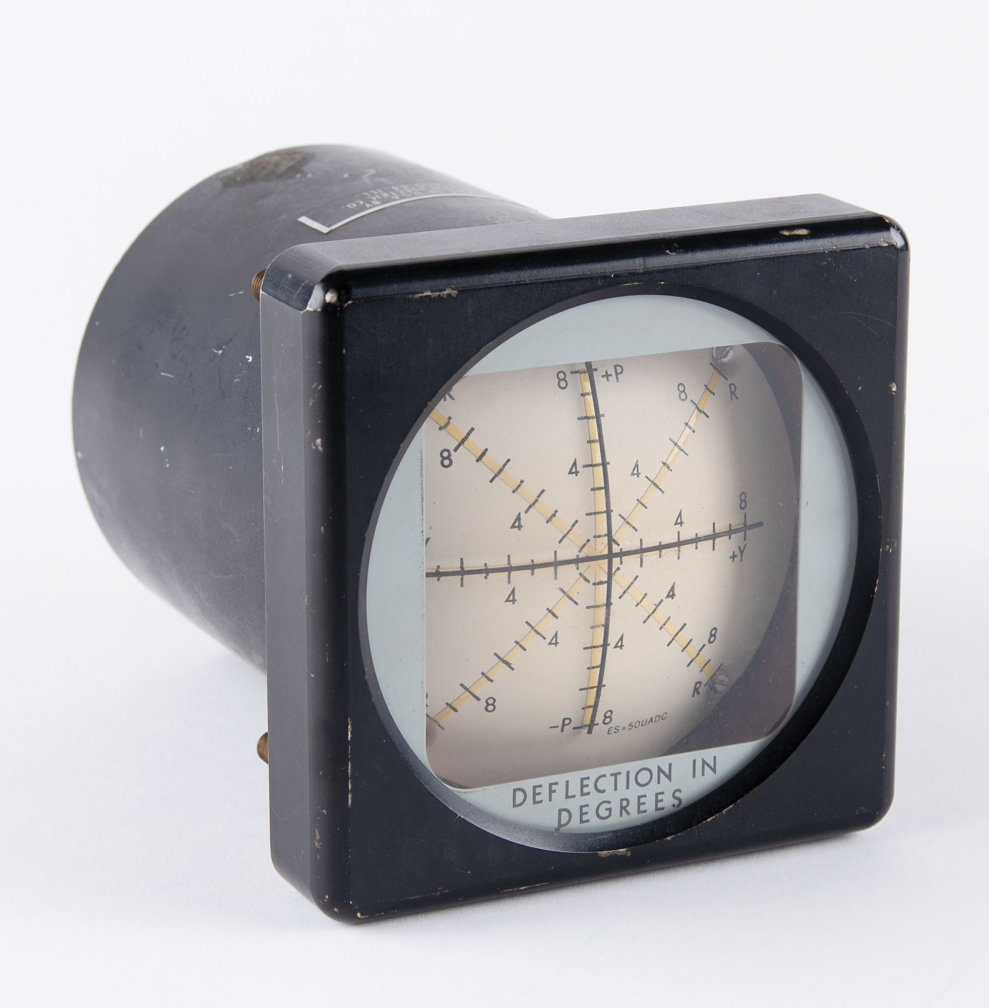 Used in banks of four on Saturn rocket engine deflection monitoring panels, these meters were used to monitor the engine deflection of the four gimballed engines on the Saturn V first stage (S-1C). A similar panel, also with four of these meters, was used for the monitoring of the gimballed engine deflection of the Saturn IB. On the S-1C stage, the outer four of the F1 engines were gimballed. For the S-1B stage, of the eight H-1 engines, the outer four were gimballed. As a result both the deflection panels for the Saturn V and Saturn IB both have four cross-point meters.