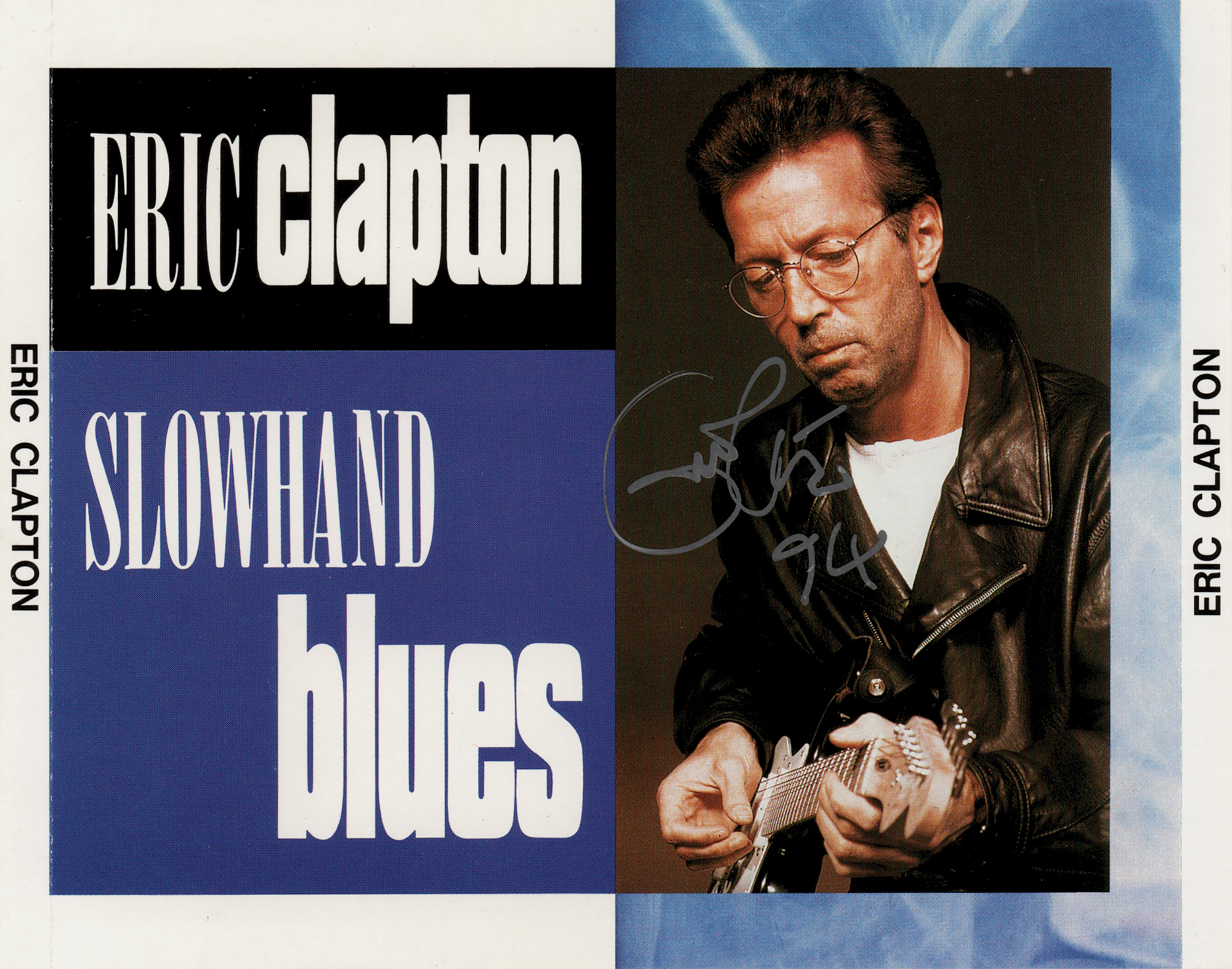 CD cover for the unofficial Eric Clapton album Slowhand Blues, signed in silver ink, "Eric Clapton, 94." In very fine condition. The CD is not included.