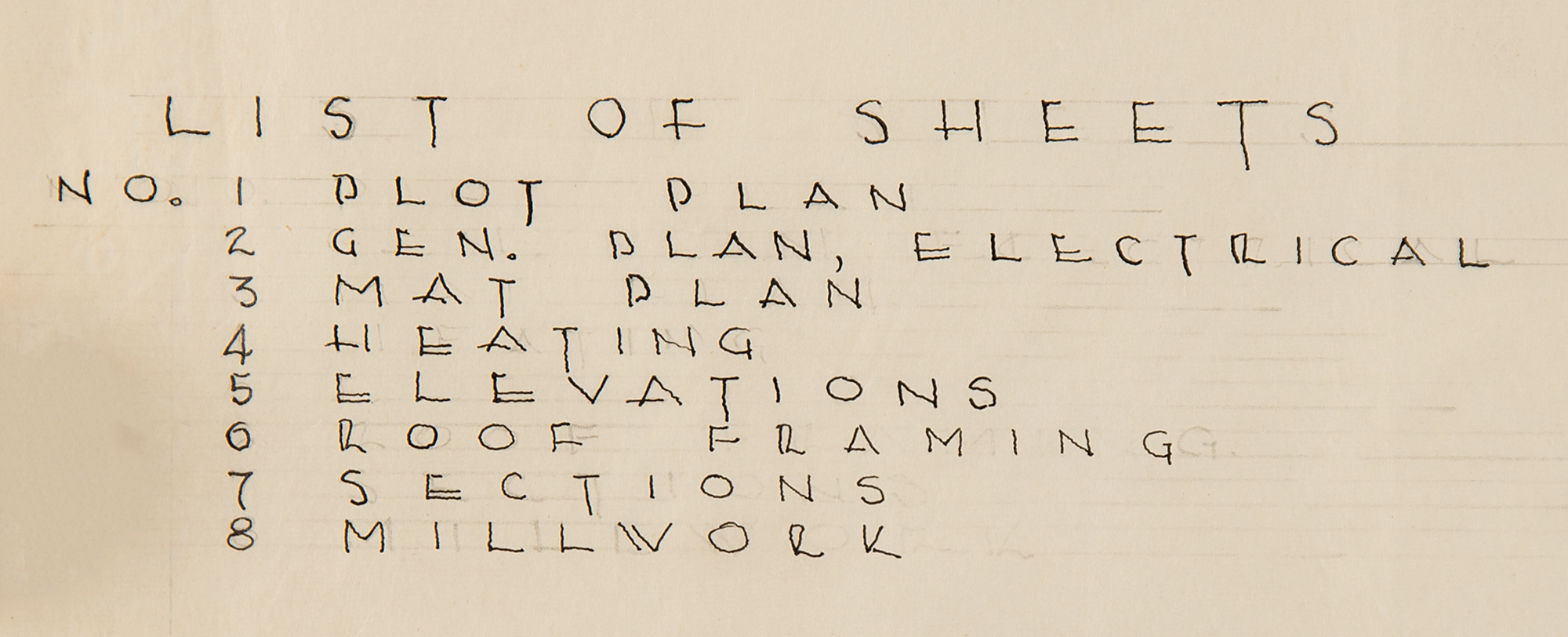 Beginning in the 1930s, Wright developed a series of homes he called 'Usonian'—cost-effective houses with no attics, no basements, and scarce ornamentation. They are characterized by native materials; flat roofs and large cantilevered overhangs for passive solar heating and natural cooling; natural lighting with clerestory windows; radiant-floor heating; and 'carports,' a term coined by Wright to describe an overhang for sheltering a parked vehicle. Most of these typical Usonian elements are evident in this design for the "Usonian House for Mr. and Mrs. Frank G. Wheeler."