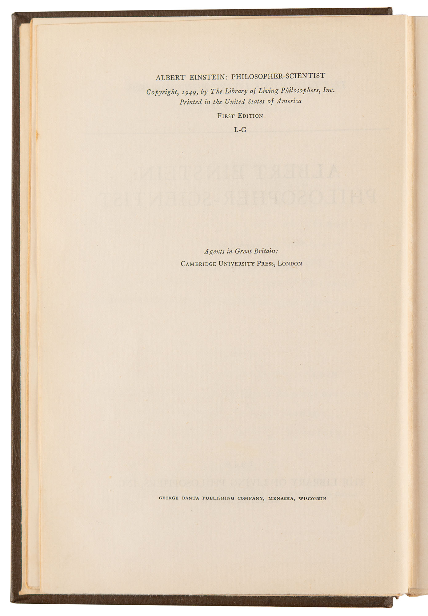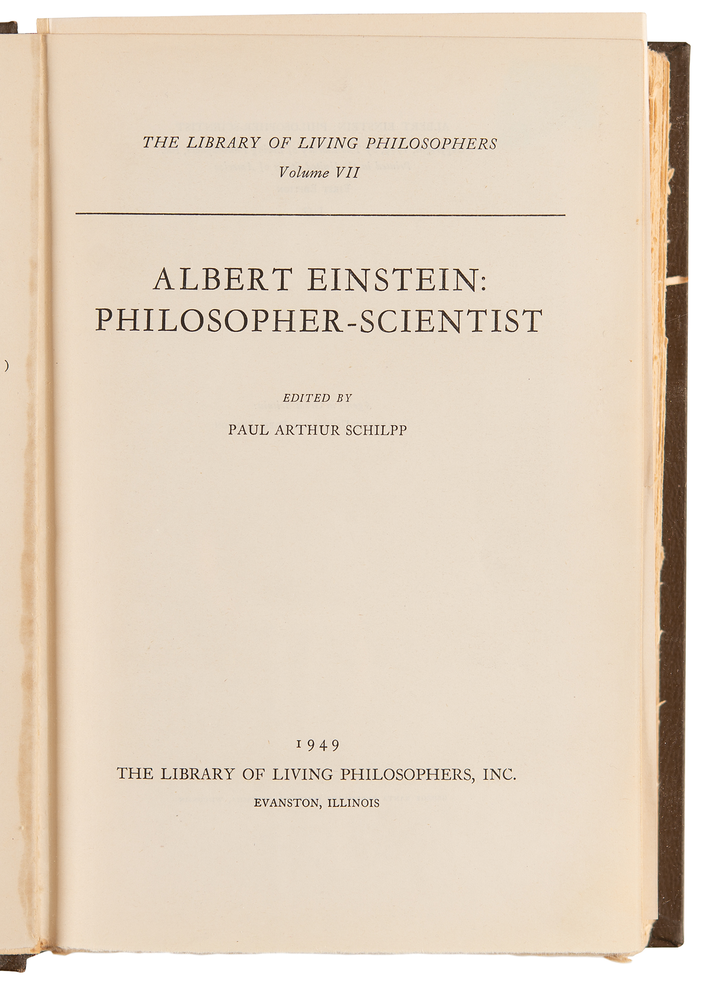 Magnificent signed limited first edition of Albert Einstein: Philosopher-Scientist, the classic 7th Volume from the Library of Living Philosophers book series