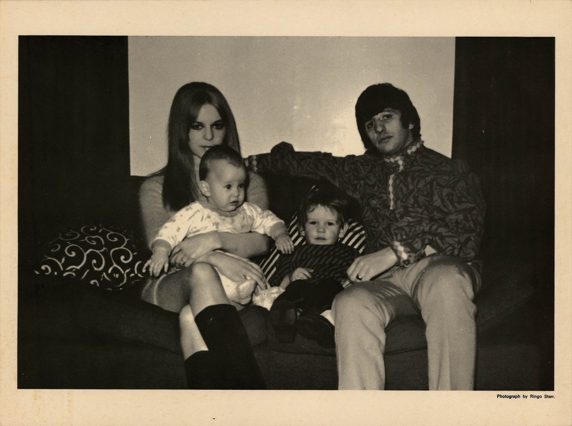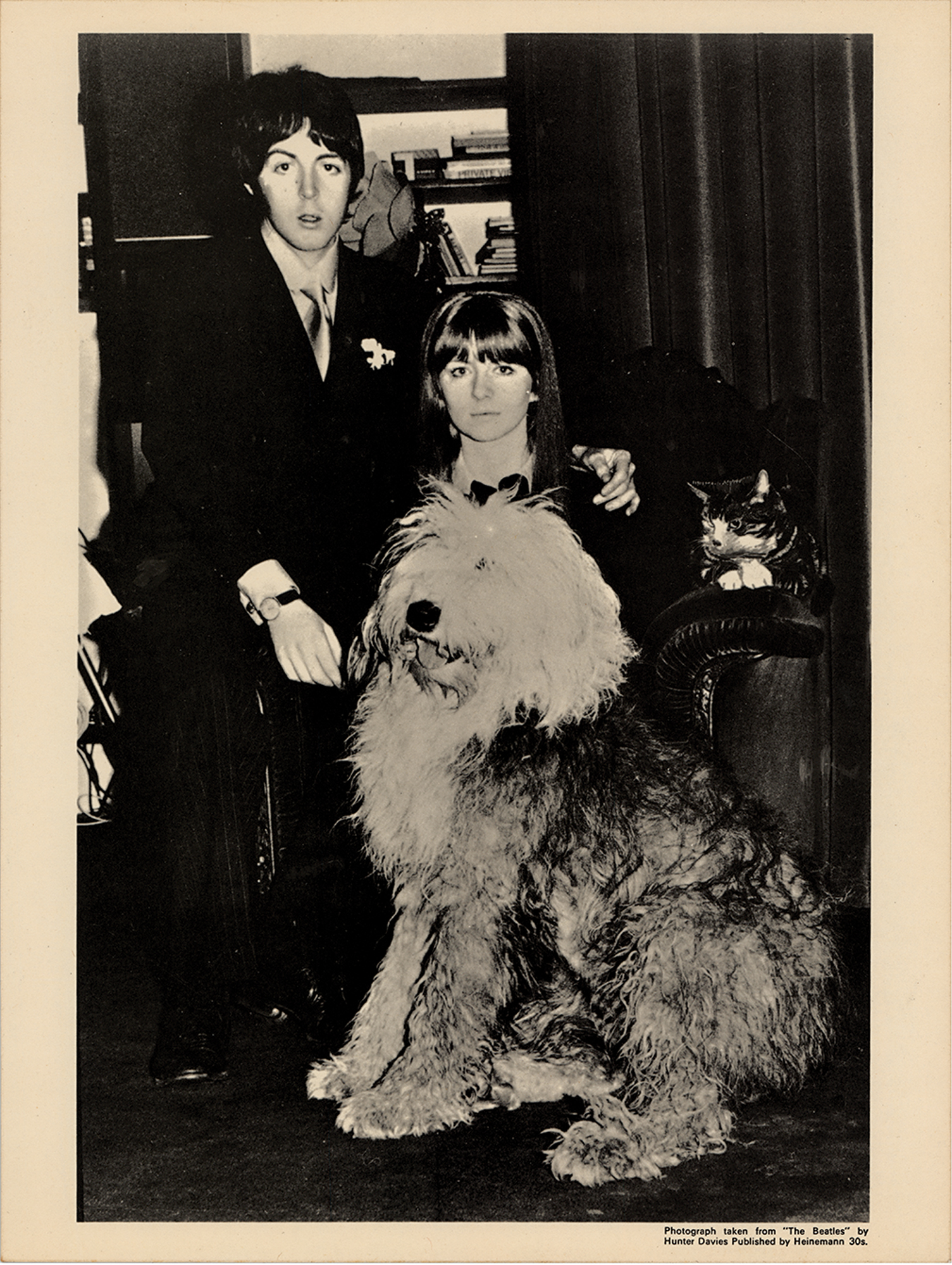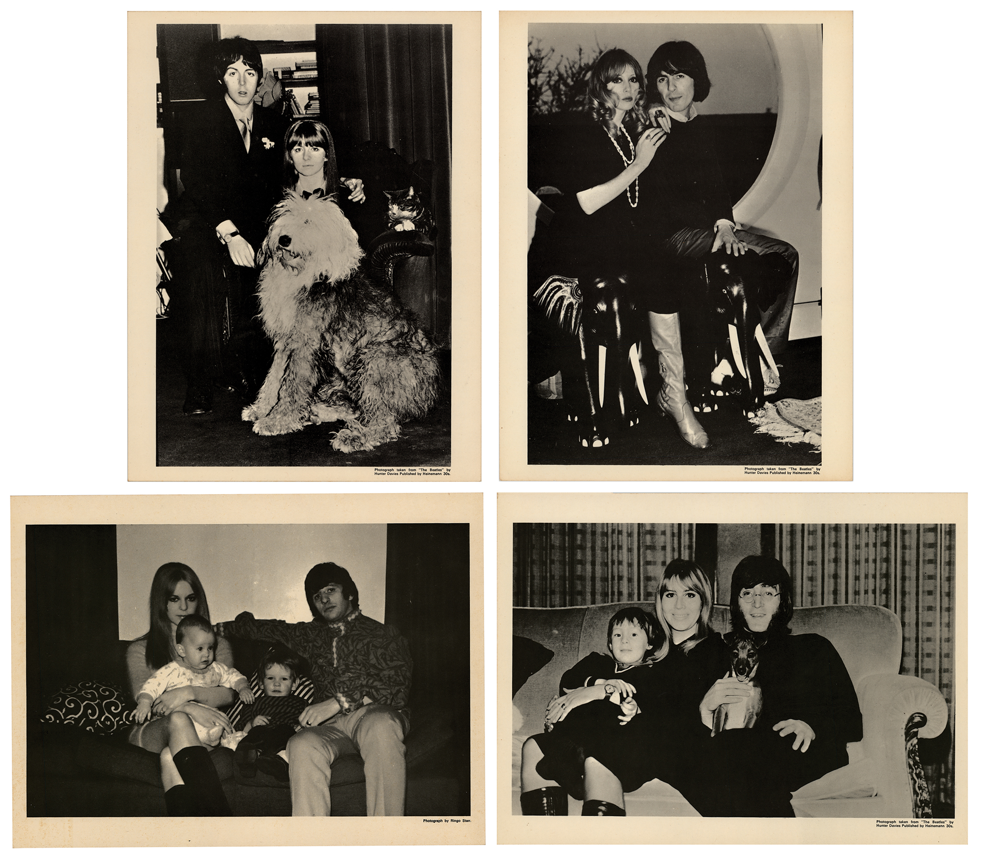 Four vintage glossy photo prints of each member of the Beatles with their families, partners, and pets, 9 x 12 and 12 x 9, which were issued with first edition copies of The Beatles: The Authorised Biography by Hunter Davies in 1968. In fine condition. Accompanied by a certificate of authenticity from Tracks and by the original mailing envelope.