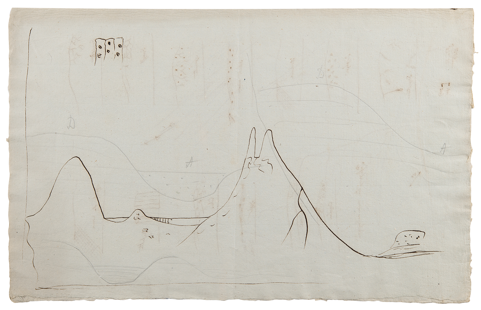 After his wide travels in Latin America at the turn of the century, Humboldt began work on what would become a 21-year project, describing the lands he explored on his journey for the first time from a modern scientific point of view. He found the intellectual and social stimuli he craved in the vibrant cultural center of Paris, where he mingled with some of science’s greatest minds, including Joseph Fourier. With this letter to noted mineralogist and geologist Louis-Benjamin Fleuriau, Humboldt is most likely passing on Fourier’s Théorie Analytique de la Chaleur (The Analytic Theory of Heat), published in 1822, which reasoned that the flow of heat between two adjacent molecules is proportional to the extremely small difference of their temperatures; the book made major contributions to mathematics and physics, including the law of heat conduction, now known as Fourier's law. Beyond the excellent association to this major scientific figure, Humboldt’s detailed geological sketches hold extraordinary value. Known for his extensive theories on magnetism, volcanicity, seismology, and tectonics, his work on rock formations is incredibly important—and incredibly beautiful, in these hand-sketched pieces.