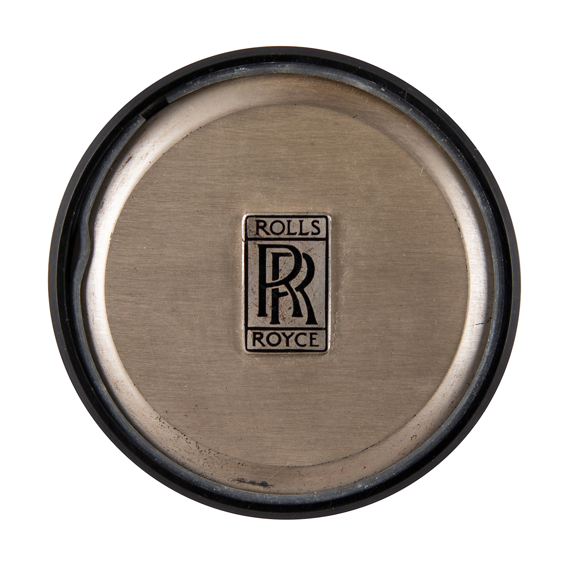 John Lennon’s original vehicle tax disc for his famous 1965 Rolls-Royce Phantom V limousine, affixed inside its original metal Rolls-Royce disc holder, which measures 3.5˝ in diameter. The 12-month license, numbered “5 0254307,” with May 1966 expiration, is annotated in ballpoint, “FJB 111C, Private, Rolls Royce.” The lower portion bears a paid price of £17.10 and is postmarked in Berkshire on June 3, 1965. In fine condition. The consignor notes that the tax disc was acquired by her aunt, who attended multiple Beatles concerts and fan-based events during her lifetime, including the 1982 Beatlefest in New York City, where this item was ostensibly obtained.