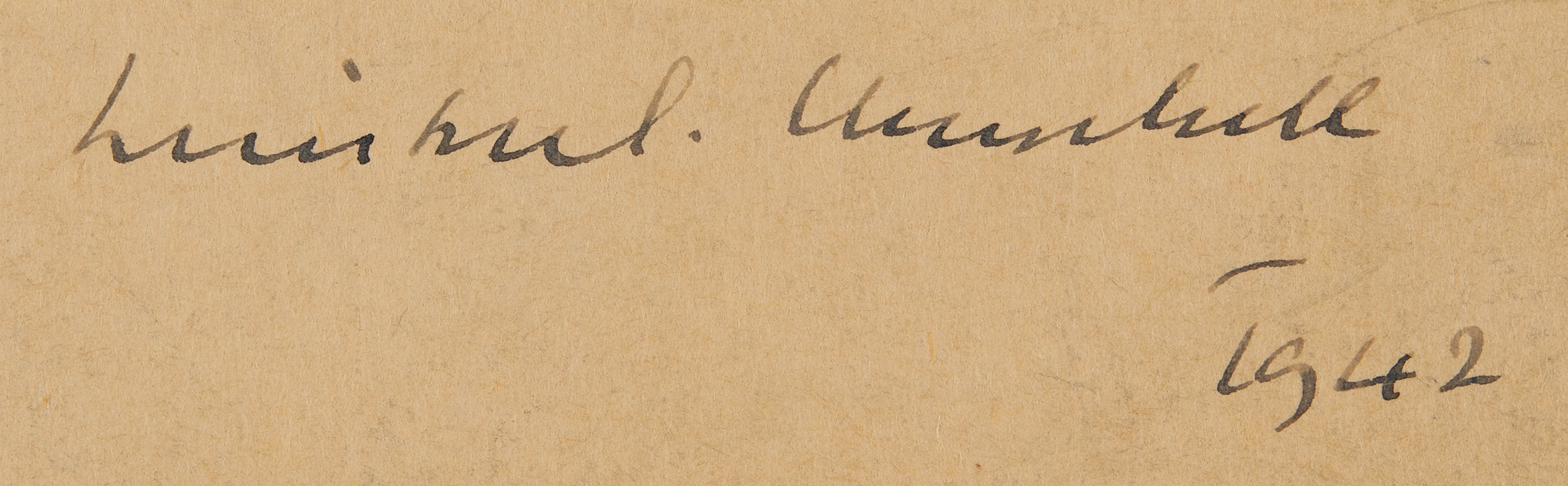 Marvelous vintage wartime matte-finish 5.5 x 7.25 three-quarter-length portrait of Prime Minister Churchill in formal attire, affixed to its original 7 x 10 mount, signed on the mount in fountain pen, "Winston S. Churchill, 1942." Reverse bears the credit stamp of Walter Stoneman of J. Russell & Sons. In fine condition, with light silvering to the edges of the image, and a few tiny scratches to its upper background area. A superlative example signed during the Second World War. As such, highly desirable.