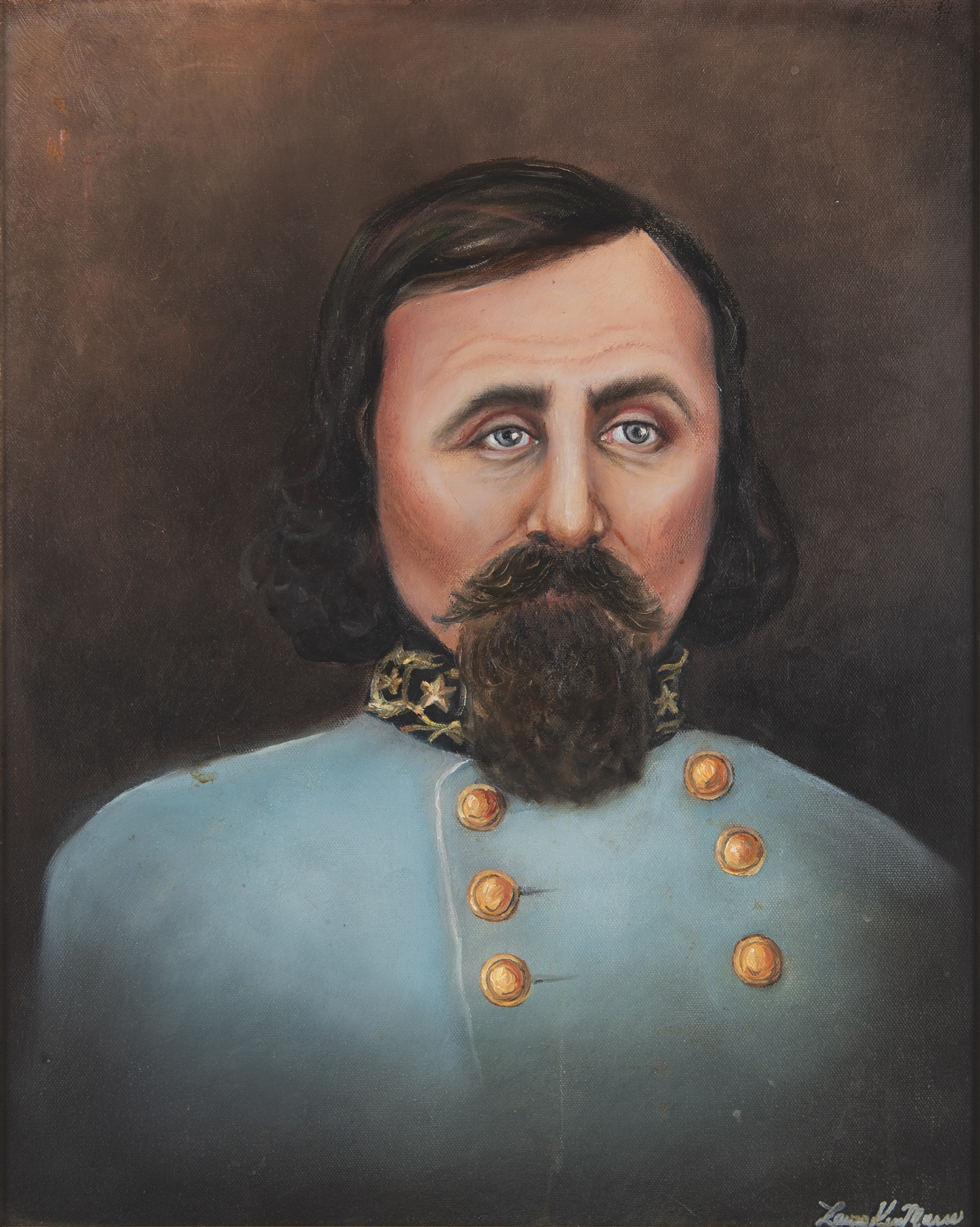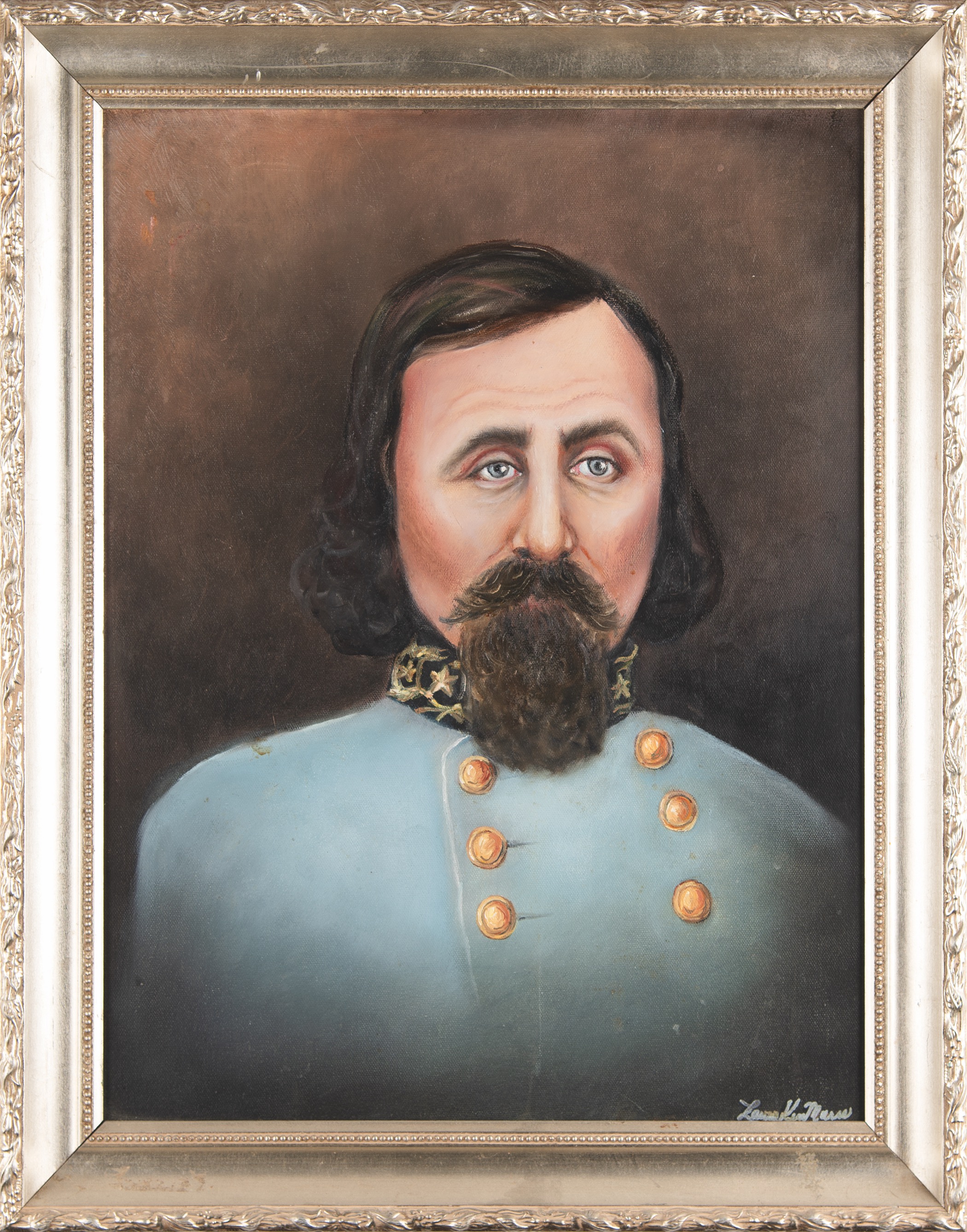 Original painting of George Pickett, oil on canvas, 15.5 x 19.5, showing the famed Confederate general in uniform, signed in the lower right by the artist. Framed to an overall size of 19.5 x 23.5. In fine condition.