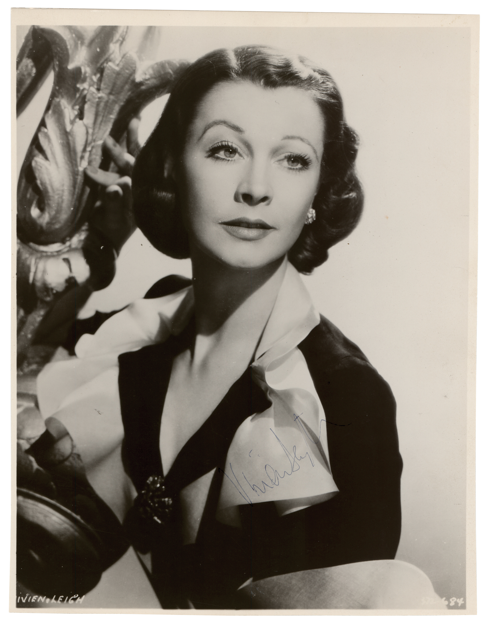 Vintage glossy 7.75 x 10 photo of Leigh in her Oscar-winning role as Blanche DuBois from the 1951 film A Streetcar Named Desire, signed in blue ballpoint, "Vivien Leigh." In fine condition.