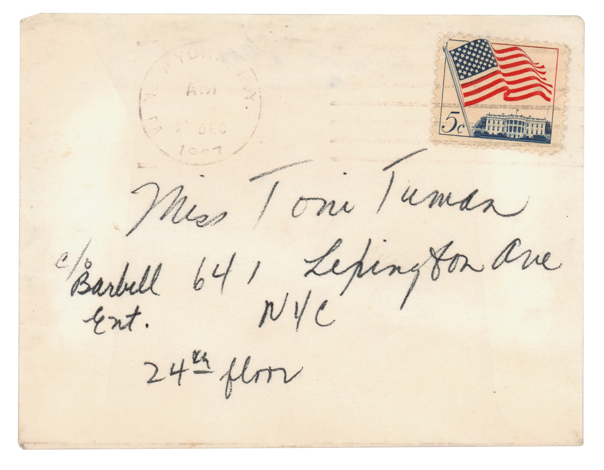 Two handwritten notes by Barbra Streisand, one signed "B—," both penned inside 4 x 3 personal stationery cards, circa 1960s–70s, both written to Toni Tuman. One, in full: "To sugar your berries, or after a bath—or powder your face, or sprinkle a patch!" The other, in full: "How really sweet of you to think of us at Xmas—very fondly, all the Goulds. P.S. Jason loves his birthday present, too!" In fine condition. Accompanied by one original mailing envelope, addressed in Streisand's hand.