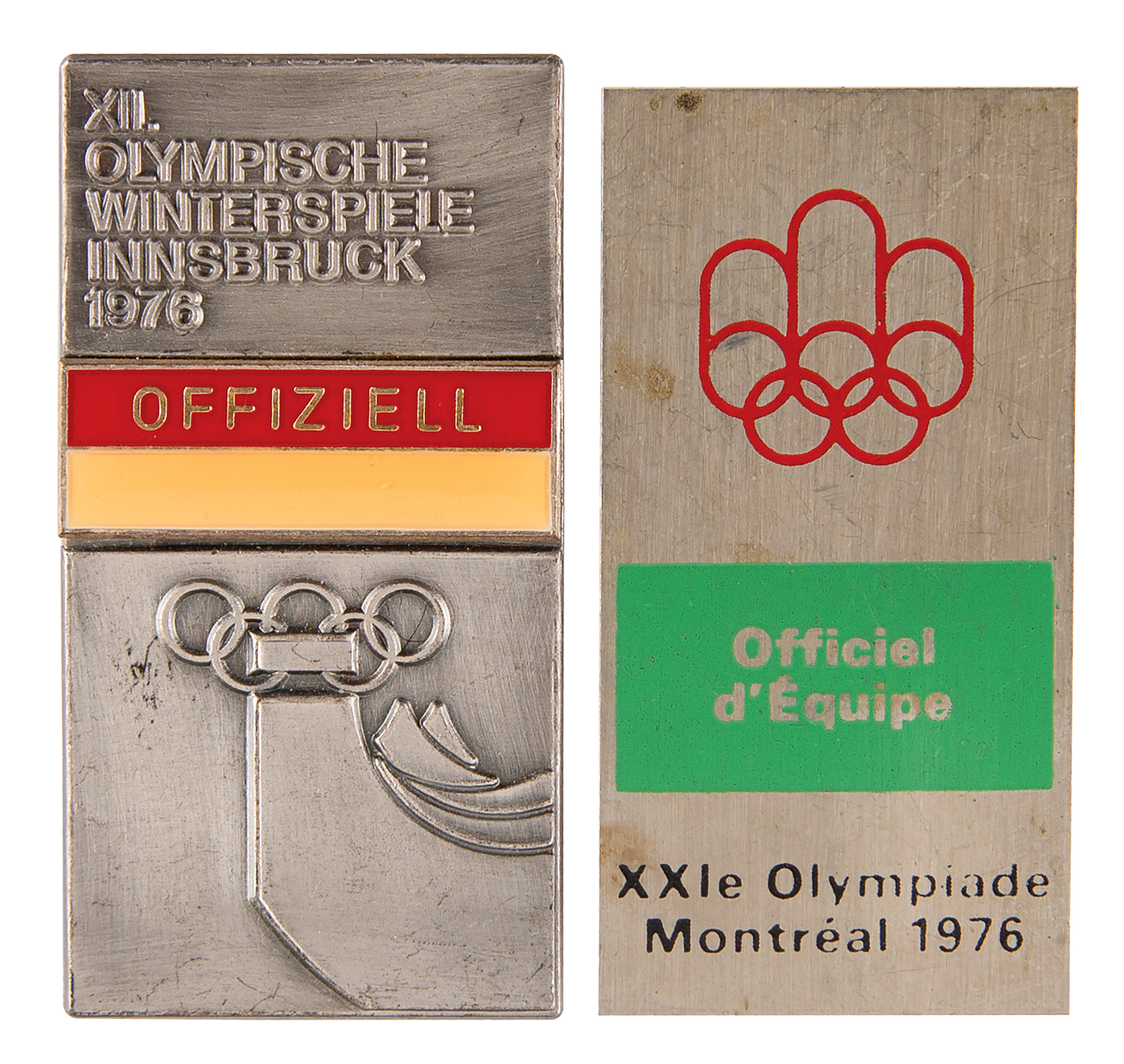 Two official’s badges from the 1976 Summer and Winter Olympics, respectively held in Montreal and Innsbruck: