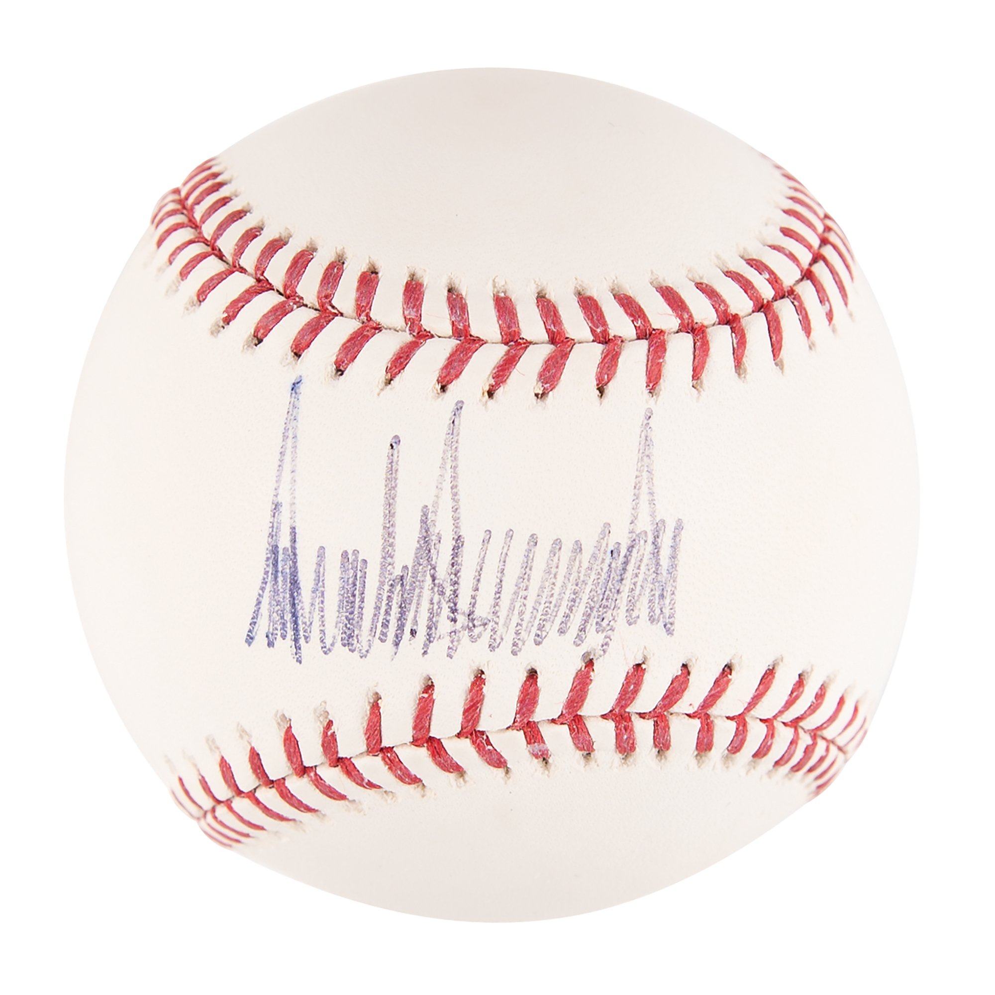 Rawlings Official Major League (Manfred) baseball signed on the sweet spot in black ballpoint by Donald Trump. In very fine condition. Accompanied by a full letter of authenticity from JSA. A highly sought-after format connecting America's national pastime to its highest office.