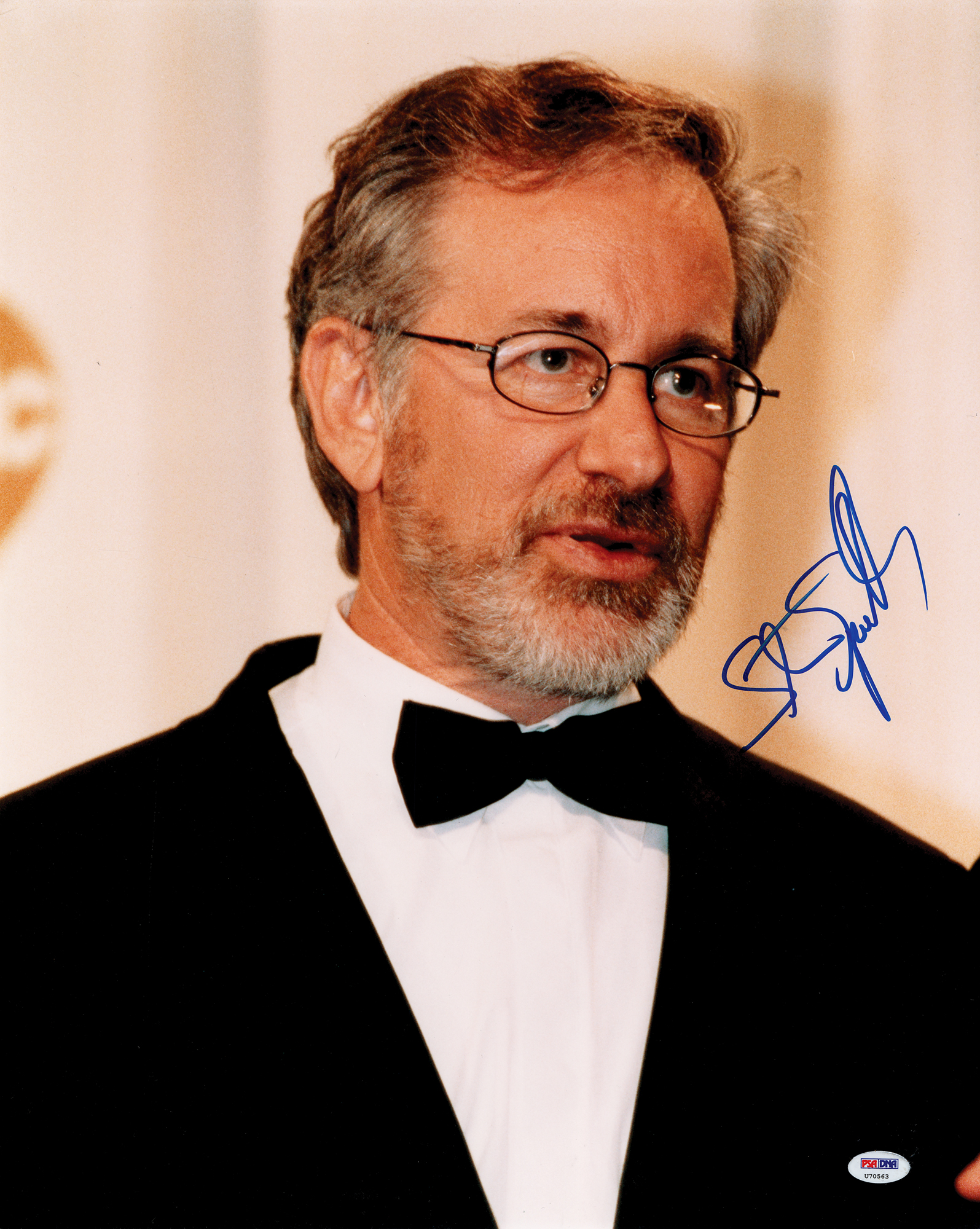 Color glossy 16 x 20 close-up photo of the Academy Award-winning director, boldly signed in blue felt tip by Steven Spielberg. In fine condition, with a PSA/DNA authentication label affixed to the lower right corner. Accompanied by a certificate of authenticity from PSA/DNA.