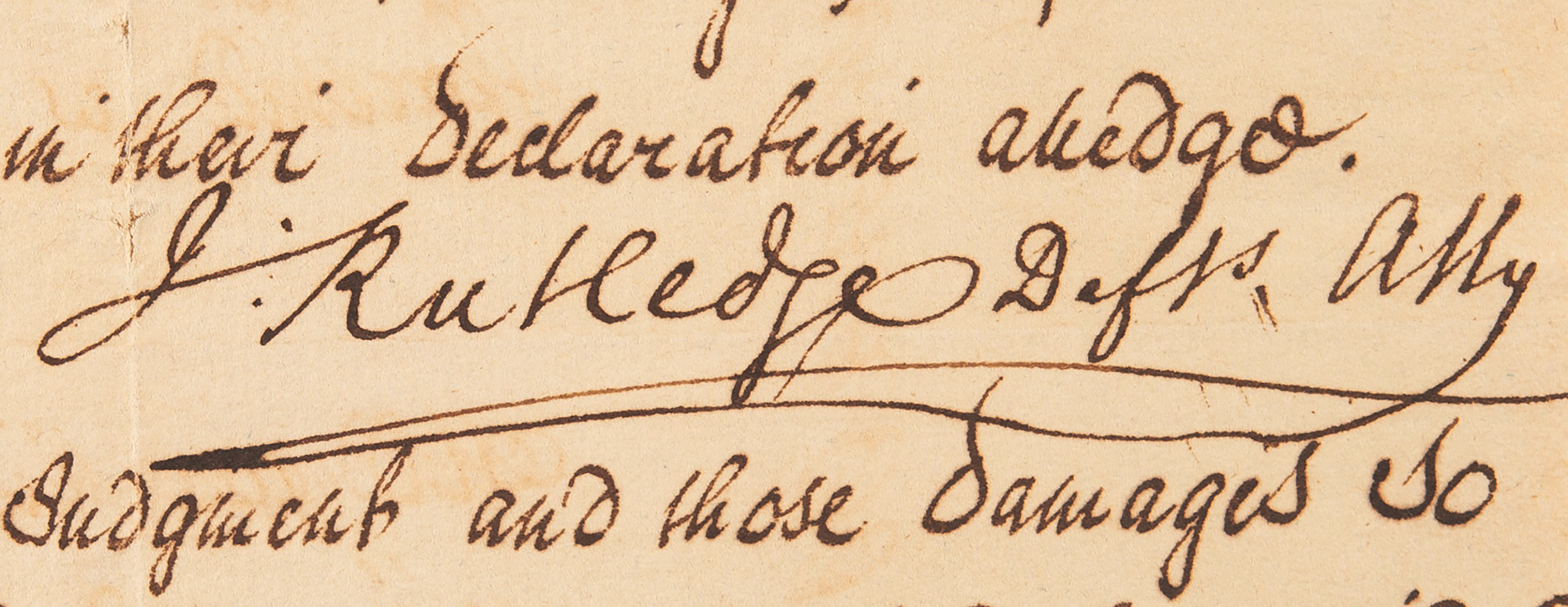 Manuscript DS signed “J. Rutledge,” one page, 12.25 x 7.75, [Charleston, South Carolina], May 30, 1763. Plea of Confession in Austin et al vs Graban, signed by Rutledge as defense attorney on behalf of John Graban. Countersigned by Charles Shinner as Chief Justice, and Dougal Campbell as Charleston Court Clerk.