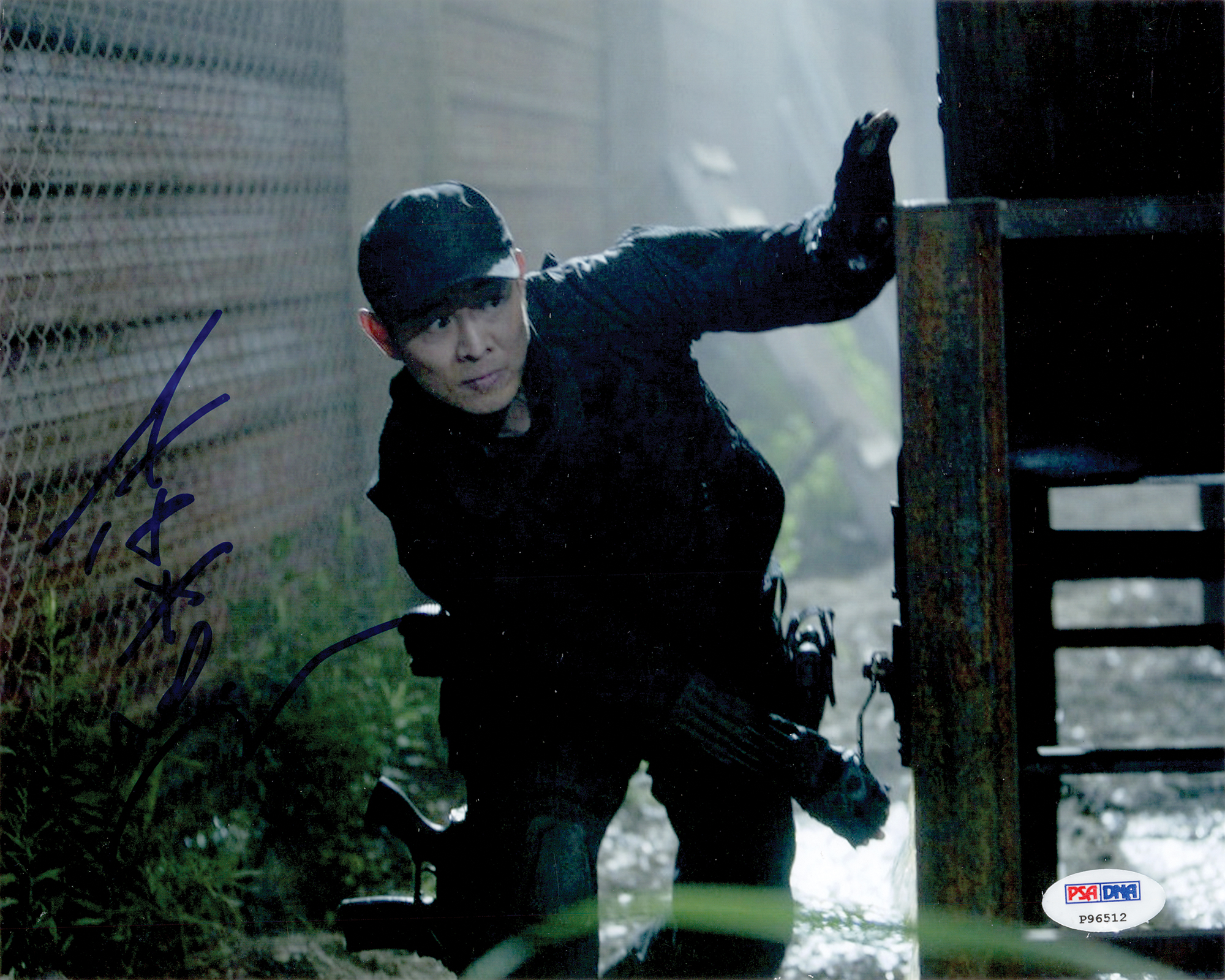 Color glossy 10 x 8 photo of Yin Yang from The Expendables, signed in blue felt tip by Jet Li in Chinese characters. In fine condition, with a PSA/DNA authentication label affixed to the lower right corner. Accompanied by a certificate of authenticity from PSA/DNA.