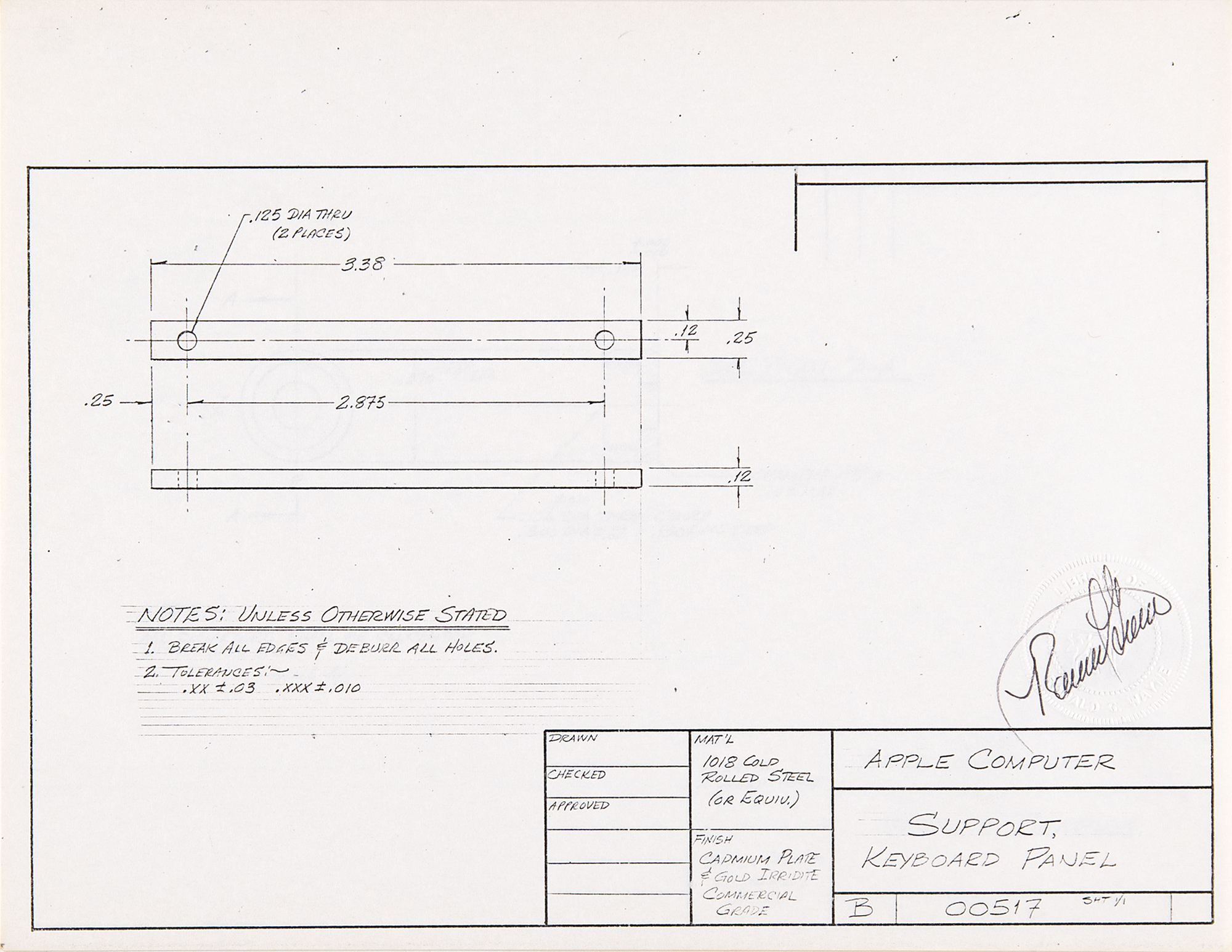 “Support, Keyboard Panel,” numbered 00517,” Sheet 1/1