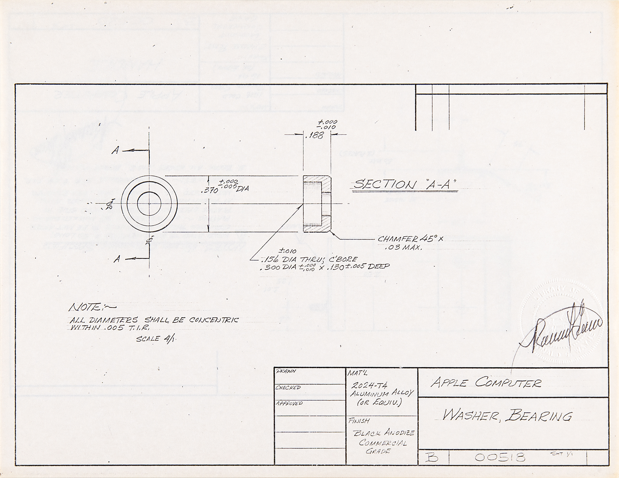 “Washer, Bearing,” numbered “00518,” Sheet 1/1