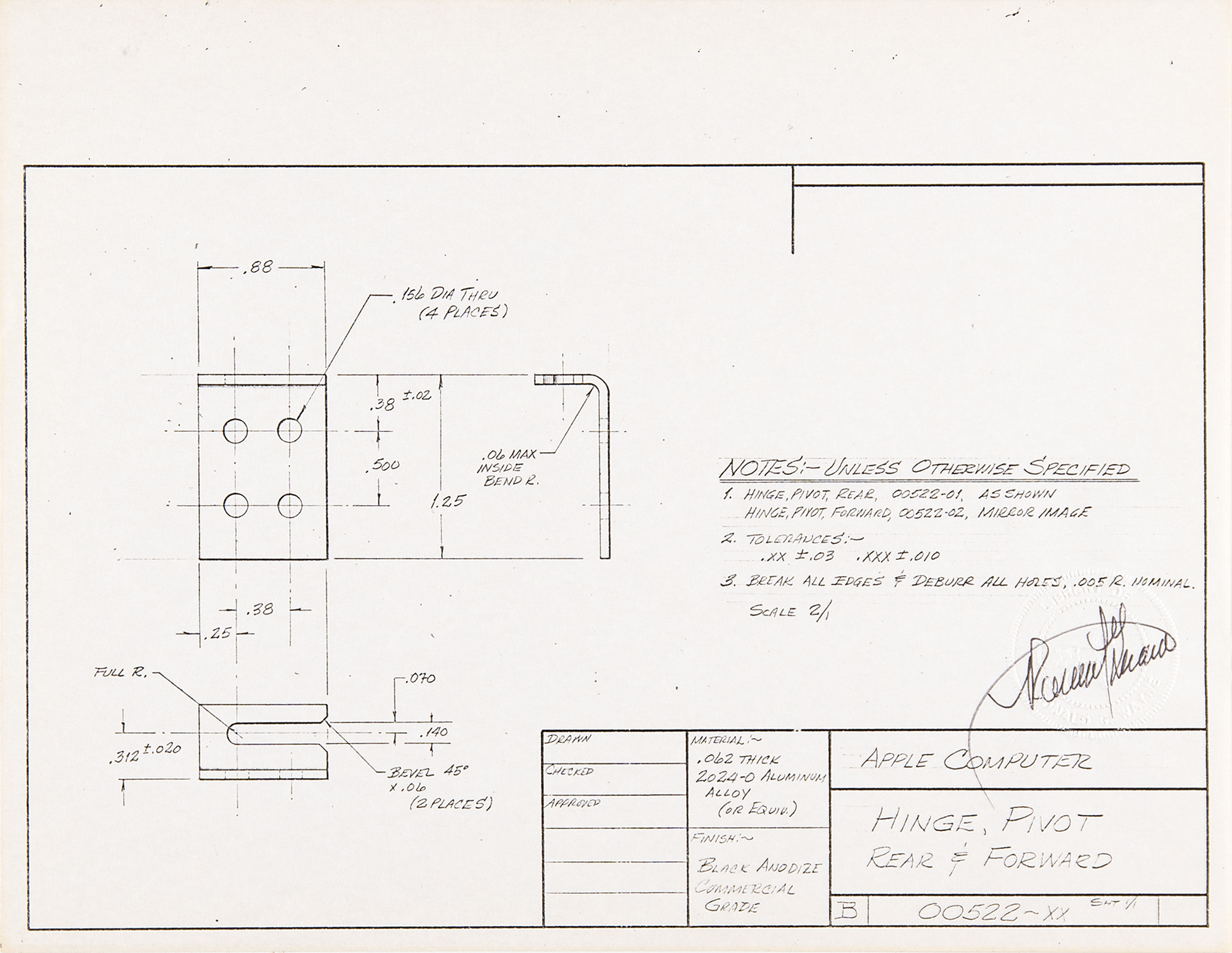 “Hinge, Pivot, Rear & Forward,” numbered “00522-xx,” Sheet 1/1