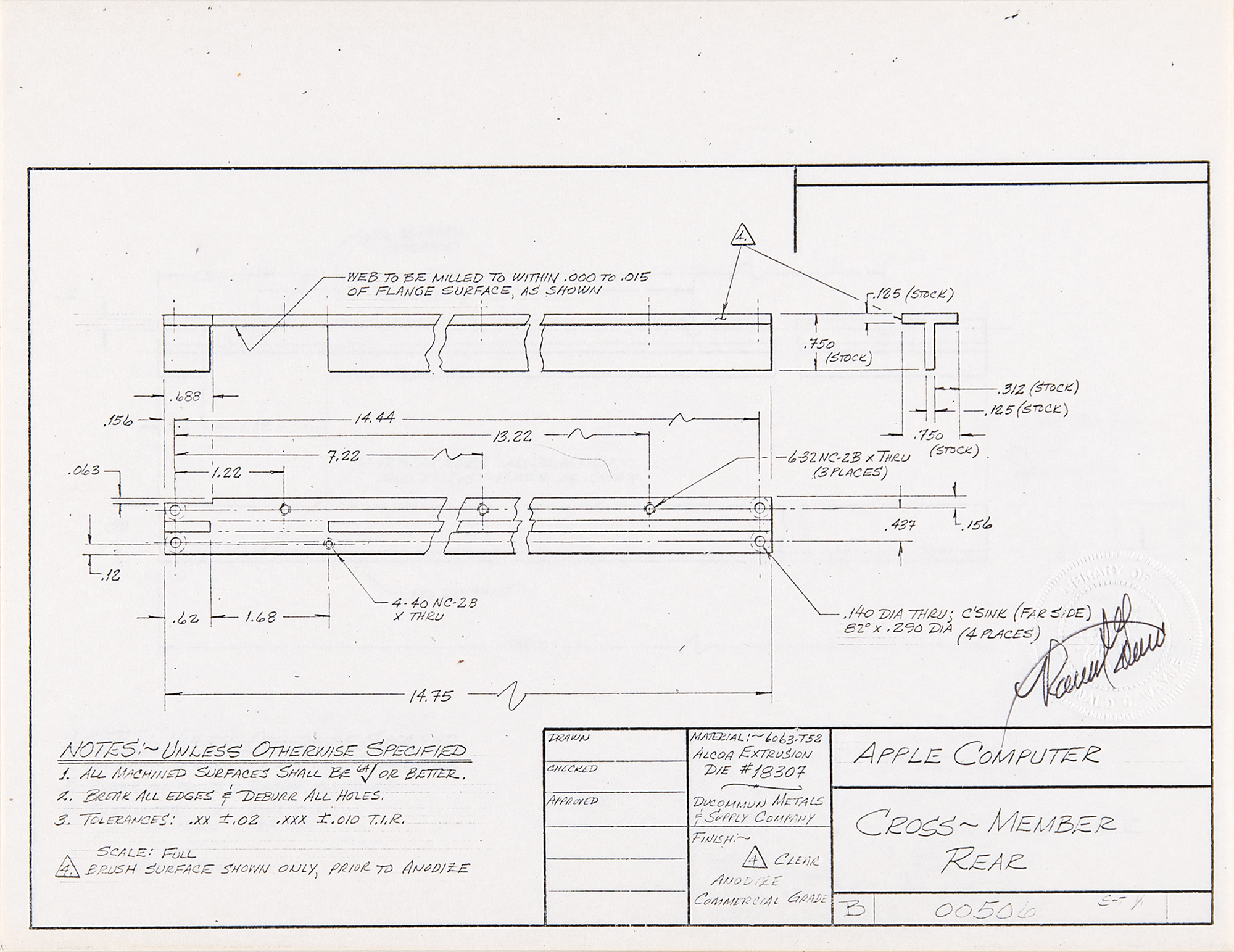 “Cross-Member Rear,” numbered “00506,” Sheet 1/1
