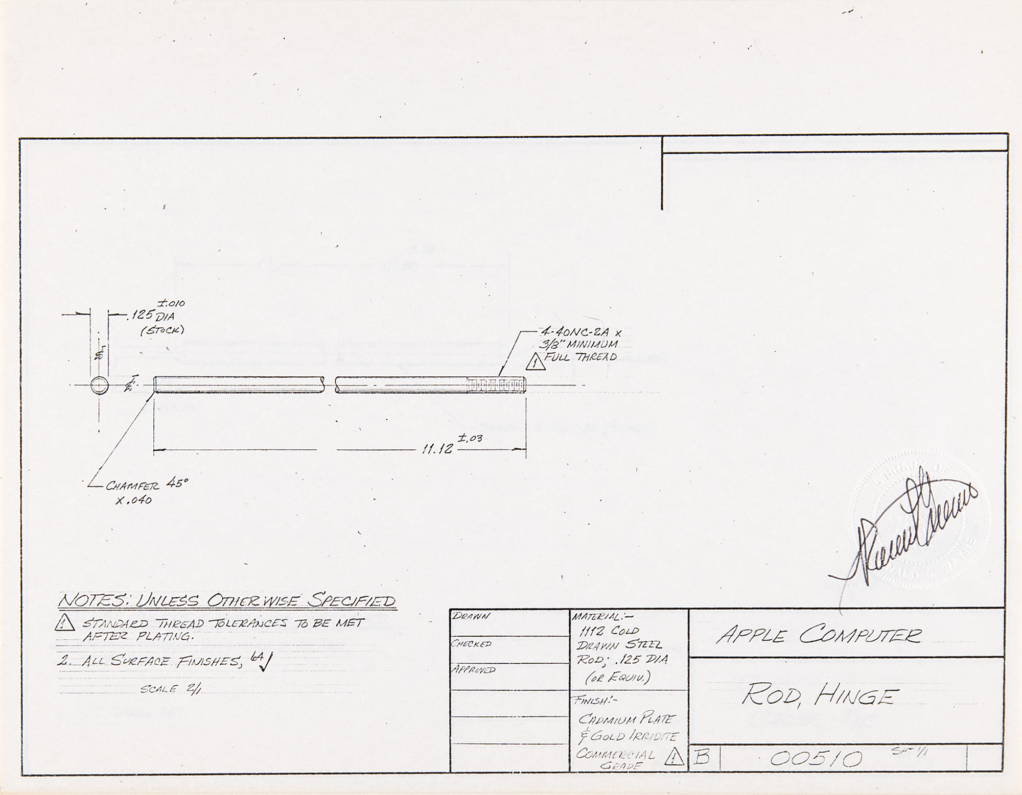 “Rod, Hinge,” numbered “00510,” Sheet 1/1
