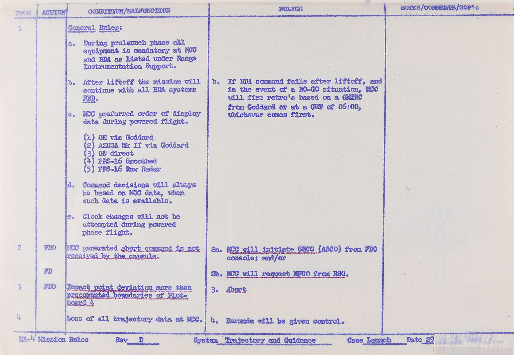 Mercury-Atlas 4 Mission Rules Notebook - From the Personal Collection of Gene Kranz