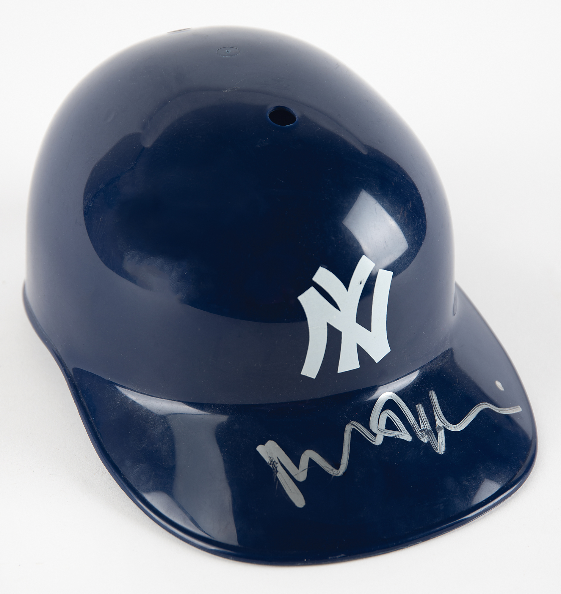 Plastic souvenir New York Yankees baseball helmet signed on the brim in silver ink by Robert De Niro. In fine condition, with some light scuffing to the signature. Accompanied by a certificate of authenticity from PSA/DNA and a LaserDisc for the 1973 sports film Bang the Drum Slowly.
