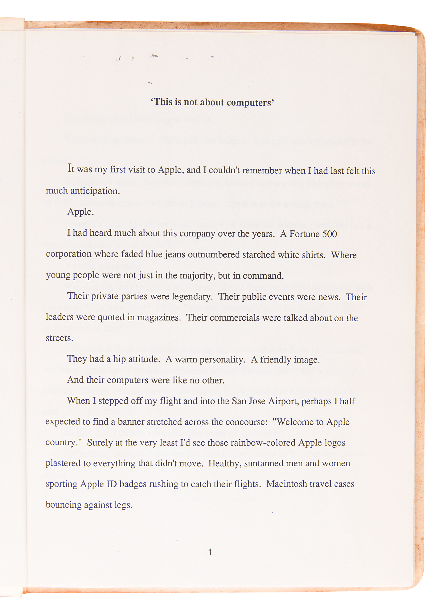 Working typescript and sealed first edition of the Apple 10th anniversary book, So Far: The First Ten Years of a Vision, with insightful letter from the Apple production manager tasked with the book's publication