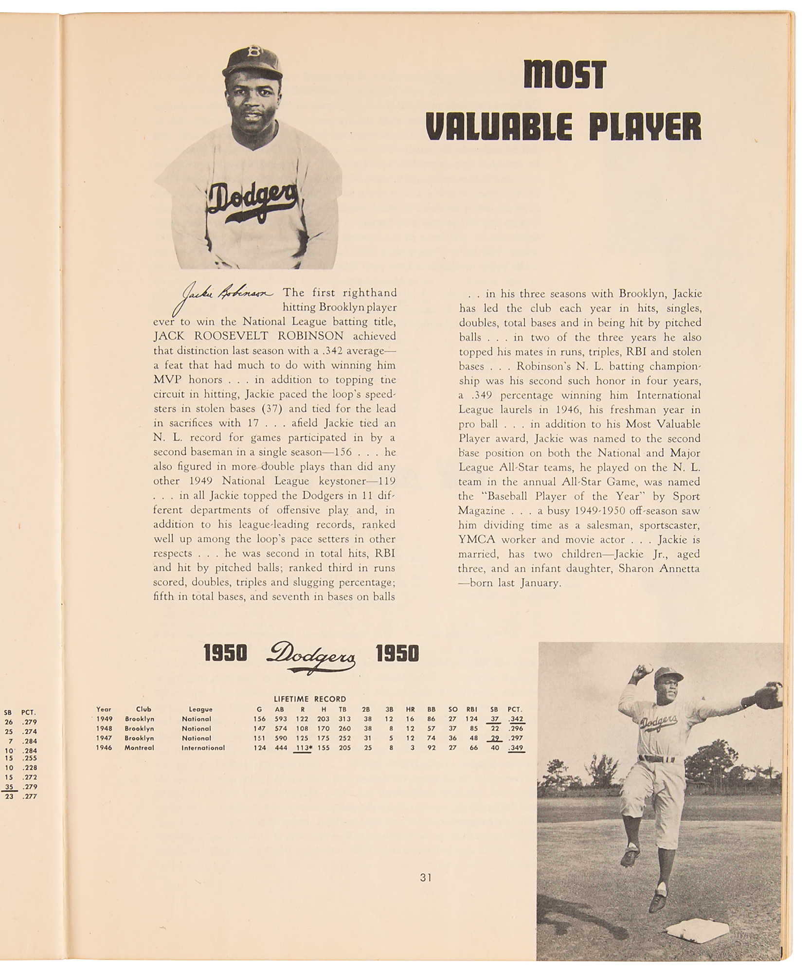 Brooklyn Dodgers yearbook for the 1950 season, signed on the cover by the great Jackie Robinson