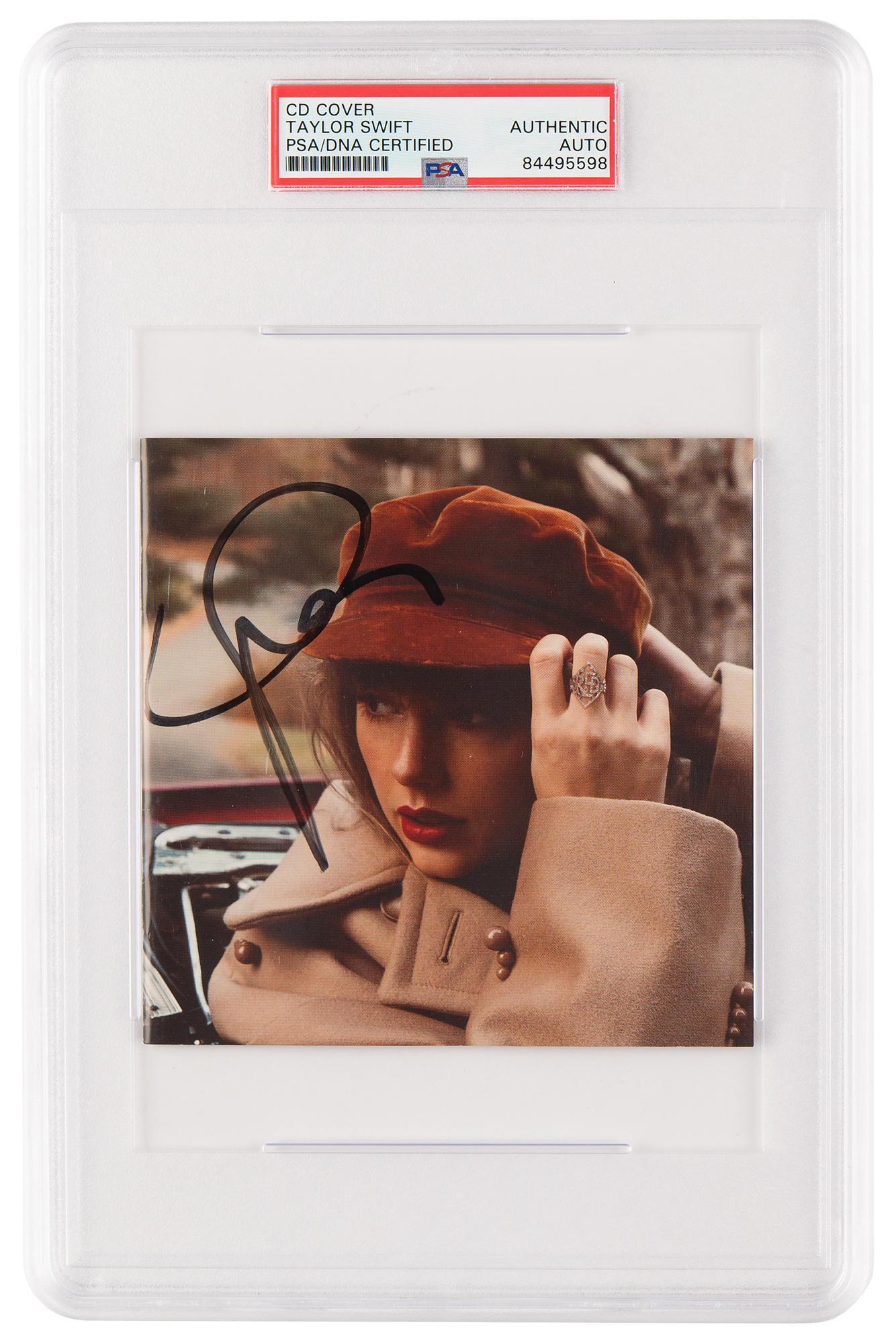 CD booklet for Taylor Swift's second re-recorded album Red (Taylor's Version), boldly signed on the front cover in black felt tip. In very fine condition. The CD is not included. Encapsulated in a PSA/DNA authentication holder.