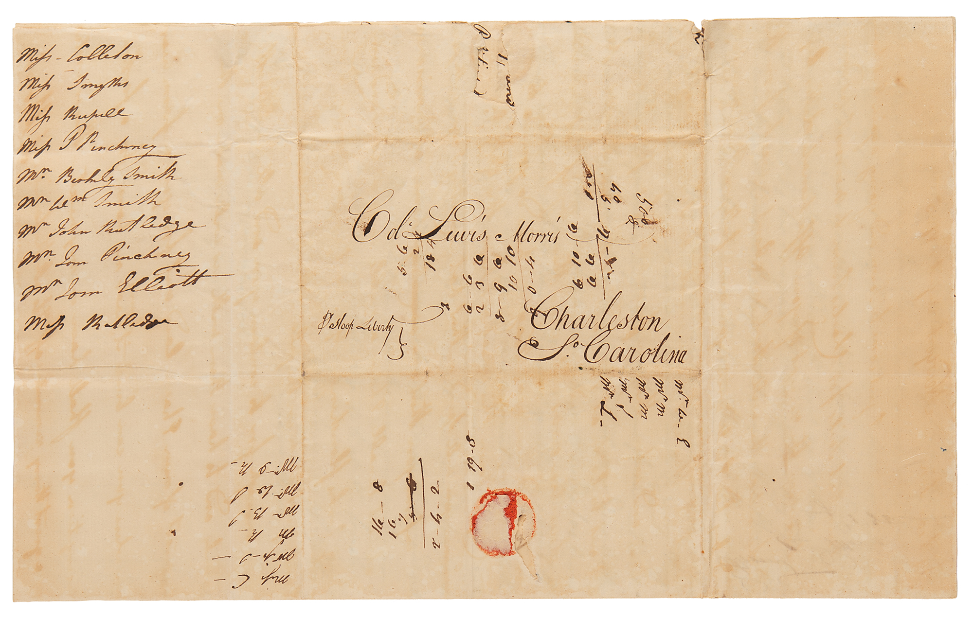 Lewis Morris's son, Lewis Morris, Jr., served as aide to General Nathanael Greene in South Carolina during the Revolution and ultimately settled there, marrying Ann B. 'Nancy' Elliot and taking up residence in Charleston—much to the dismay of his father, who here expresses the northerner's prejudice about weather in the South. The couple withstood the old Signer's persuasions and remained in Charleston, where the younger Morris served five terms in the South Carolina legislature and was elected lieutenant governor in 1794.