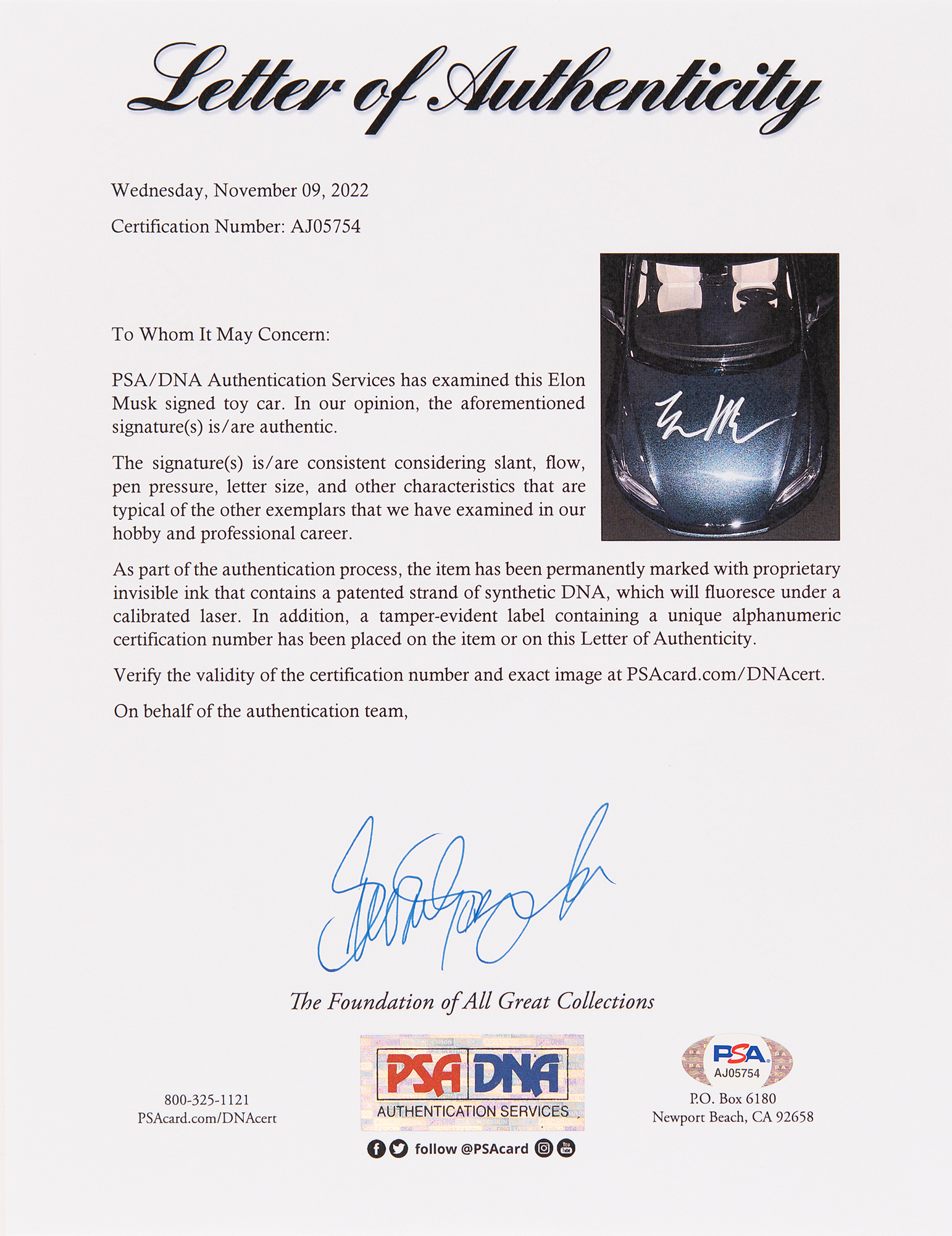 Elon Musk Signed Tesla Model S P100D Scale Model