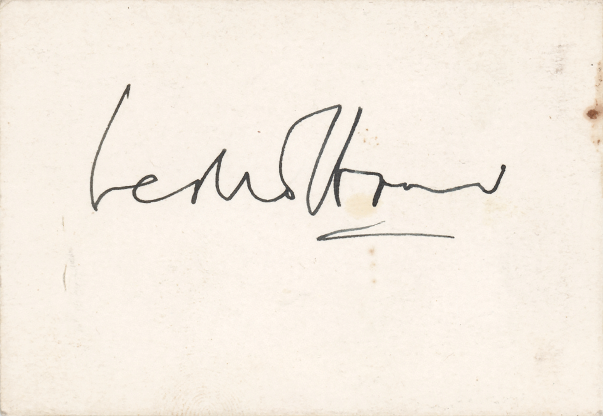 Vintage fountain pen signature, "Leslie Howard,” on an off-white 3.25 x 2.25 card. In fine condition. An attractive autograph from the acclaimed writer and actor.