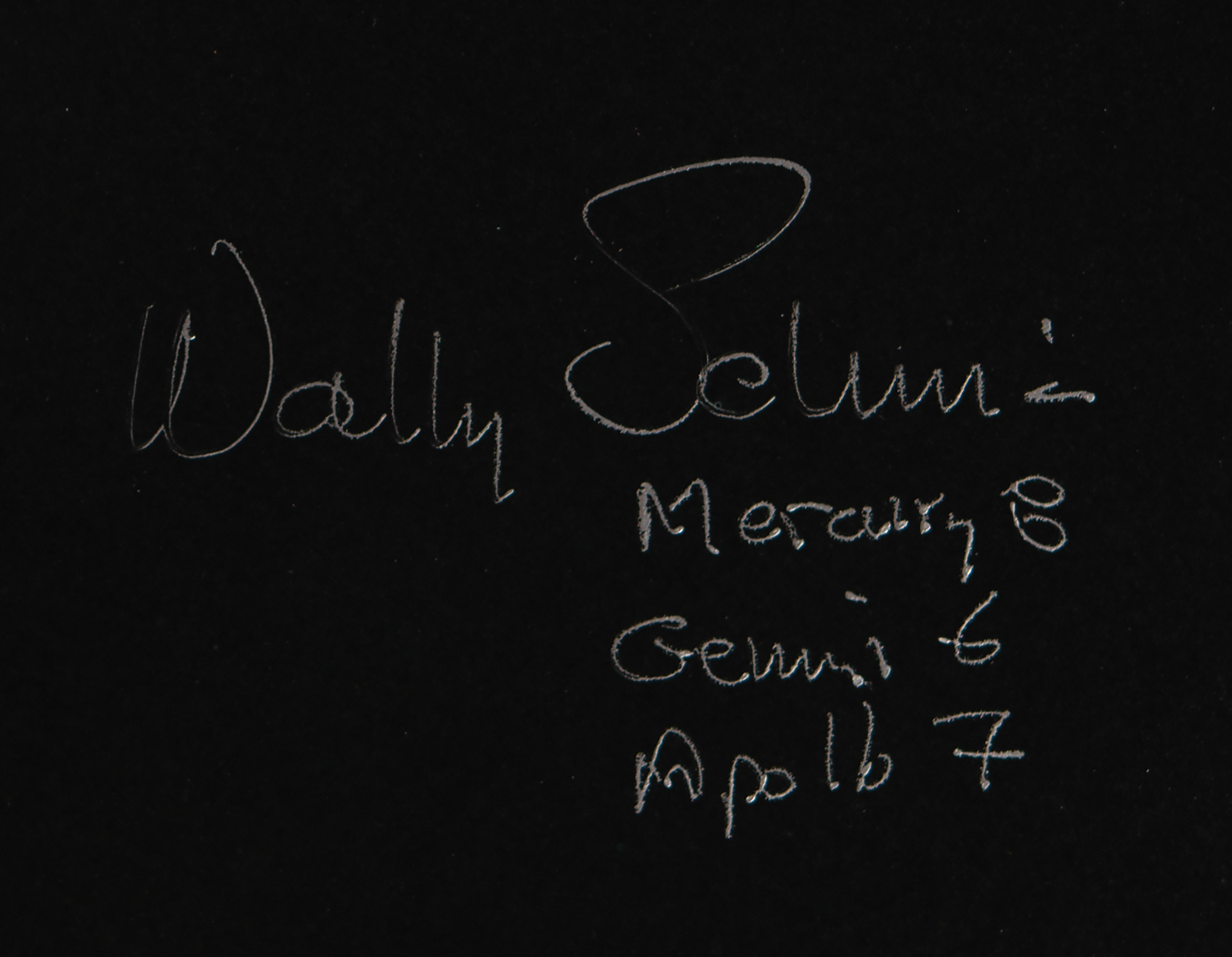 Appealing color glossy 20 x 16 cardstock photo of an 'Earthrise' as seen from the moon, signed in silver ink, "Wally Schirra, Mercury 8, Gemini 6, Apollo 7." Published by Kimball Concepts of Longwood, Florida, as part of 'The Space Shuttle Collection.' In fine condition.