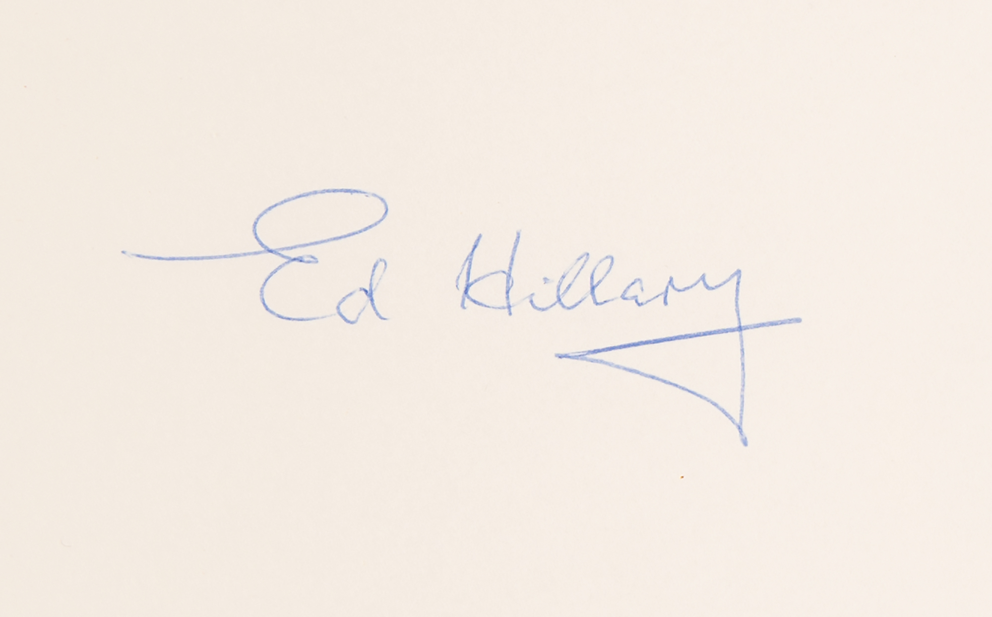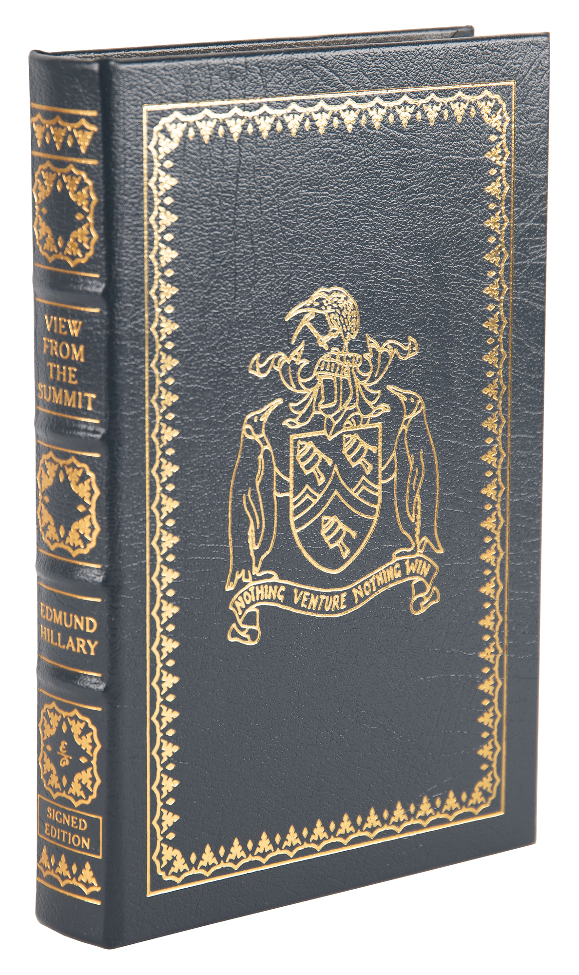 Signed book: View from the Summit. Collector's edition. Norwalk, CT: Easton Press, 1999. Leatherbound hardcover, 6.5 x 9.5, 310 pages. Signed on the colophon in blue ballpoint, "Ed Hillary." In very fine condition. Accompanied by the publisher’s certificate of authenticity.