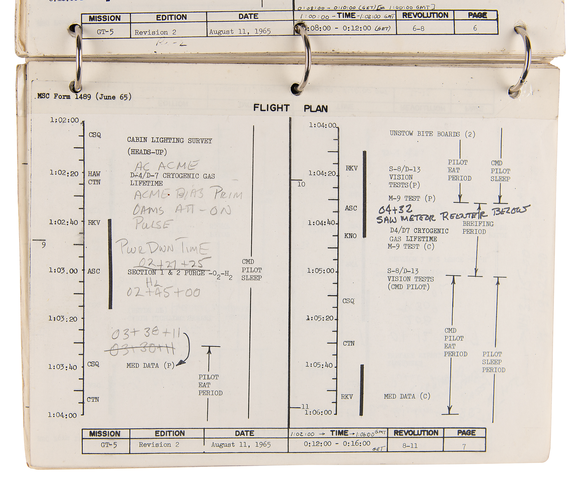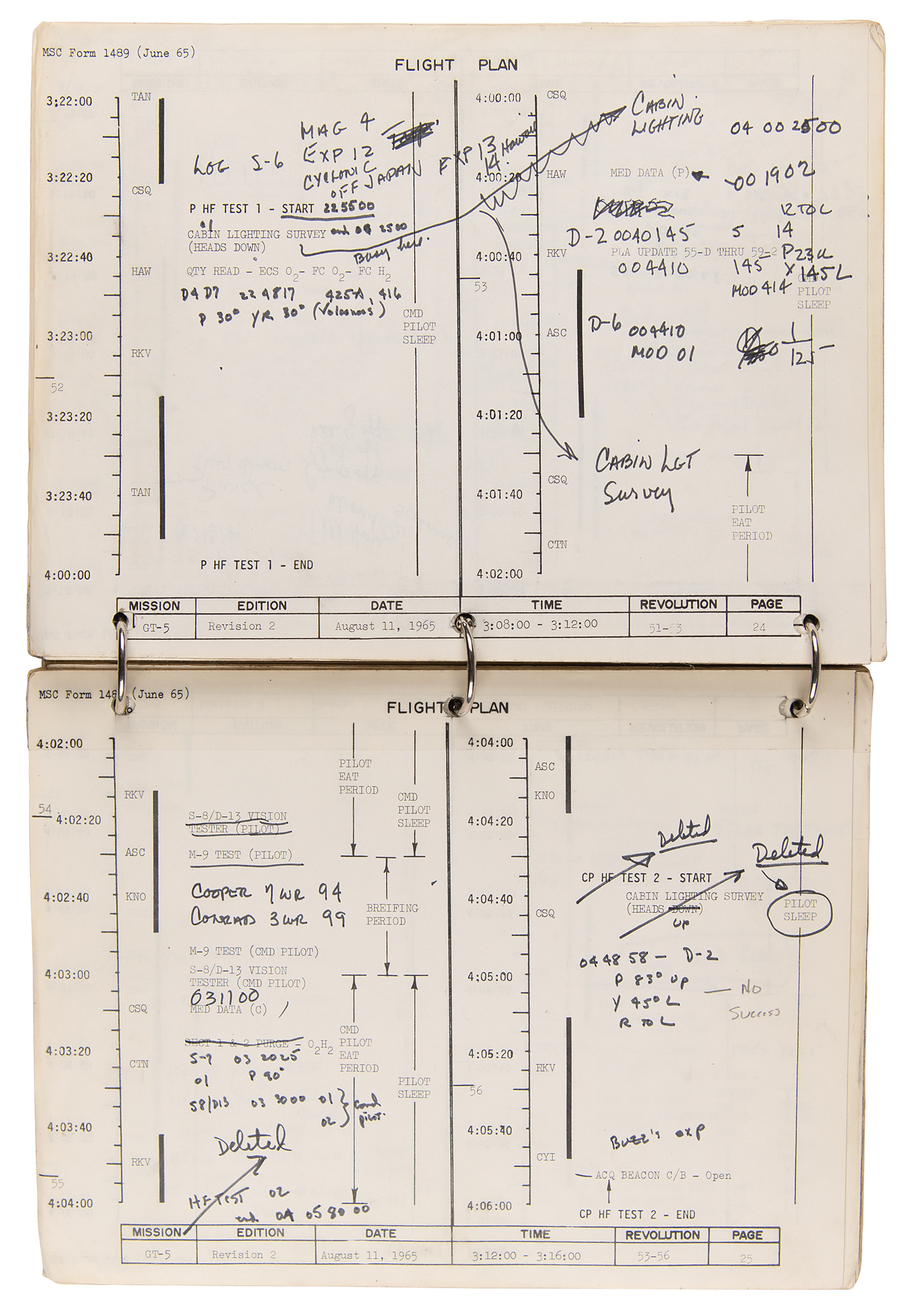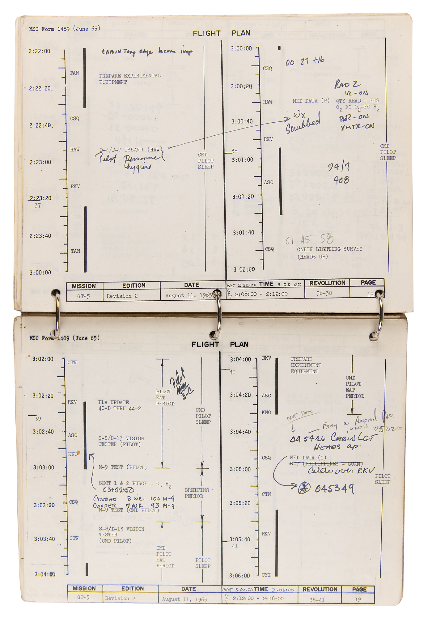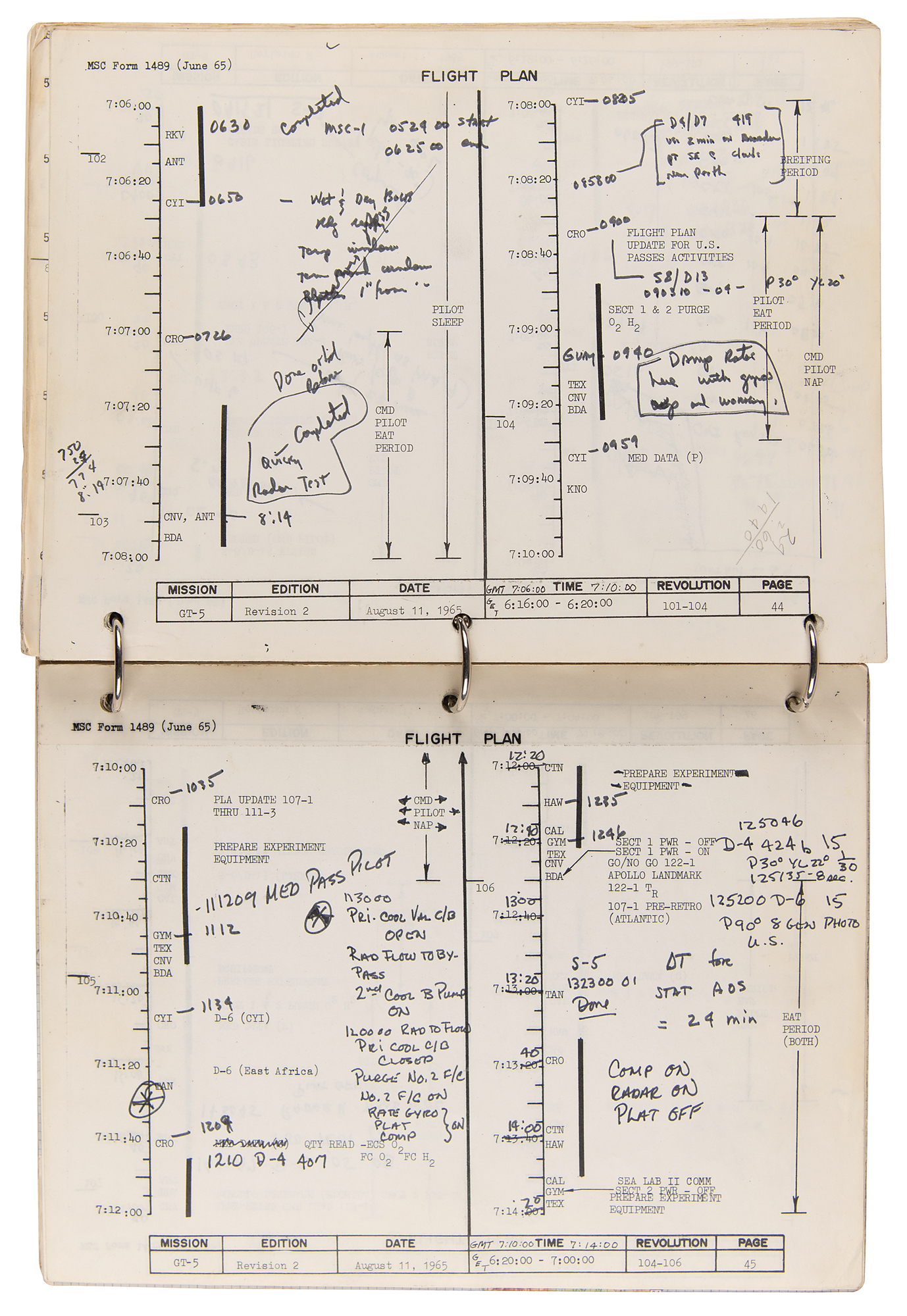 Gemini 5 Flown Flight Plan with Extensive In-Flight Notations by Charles Conrad