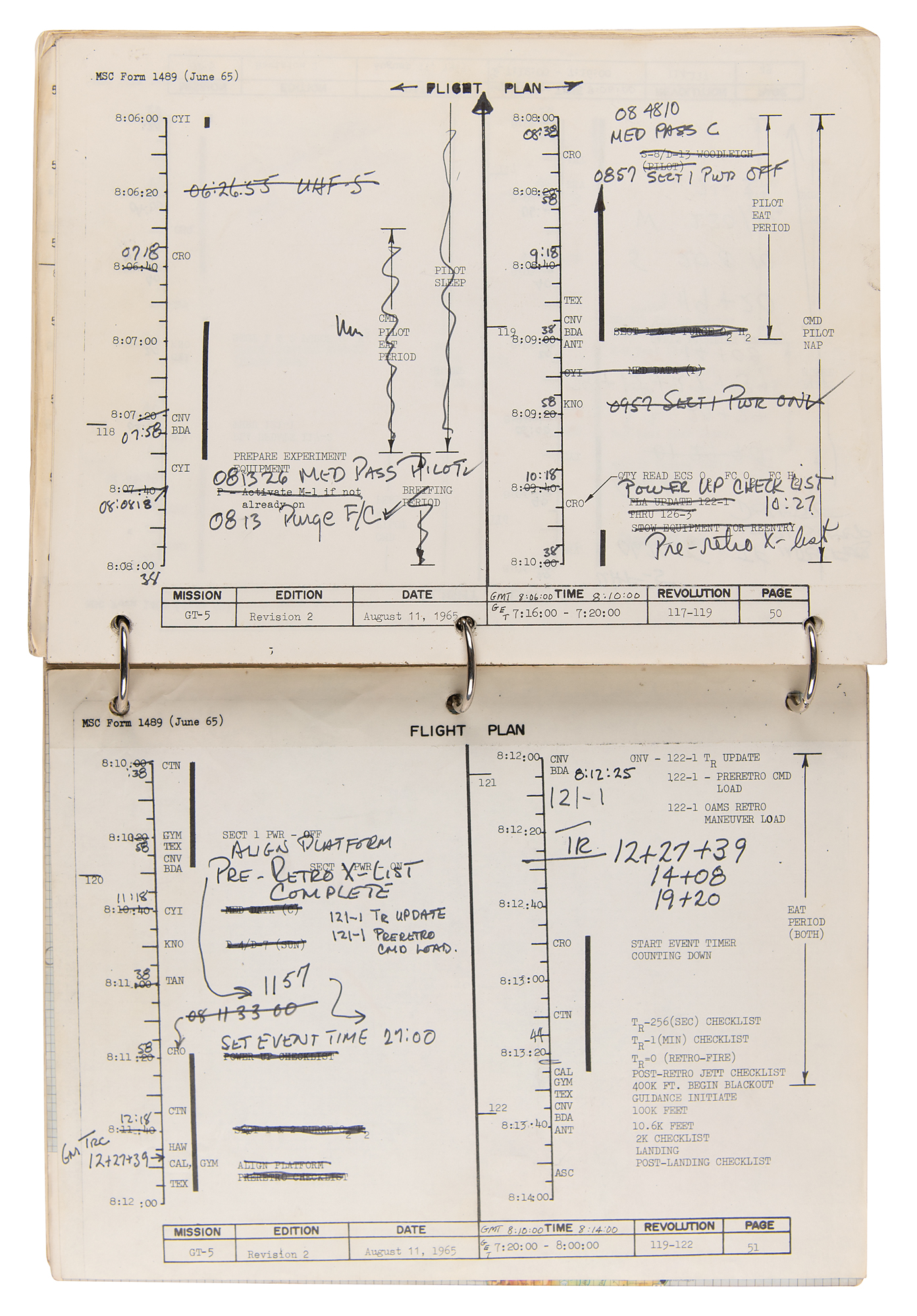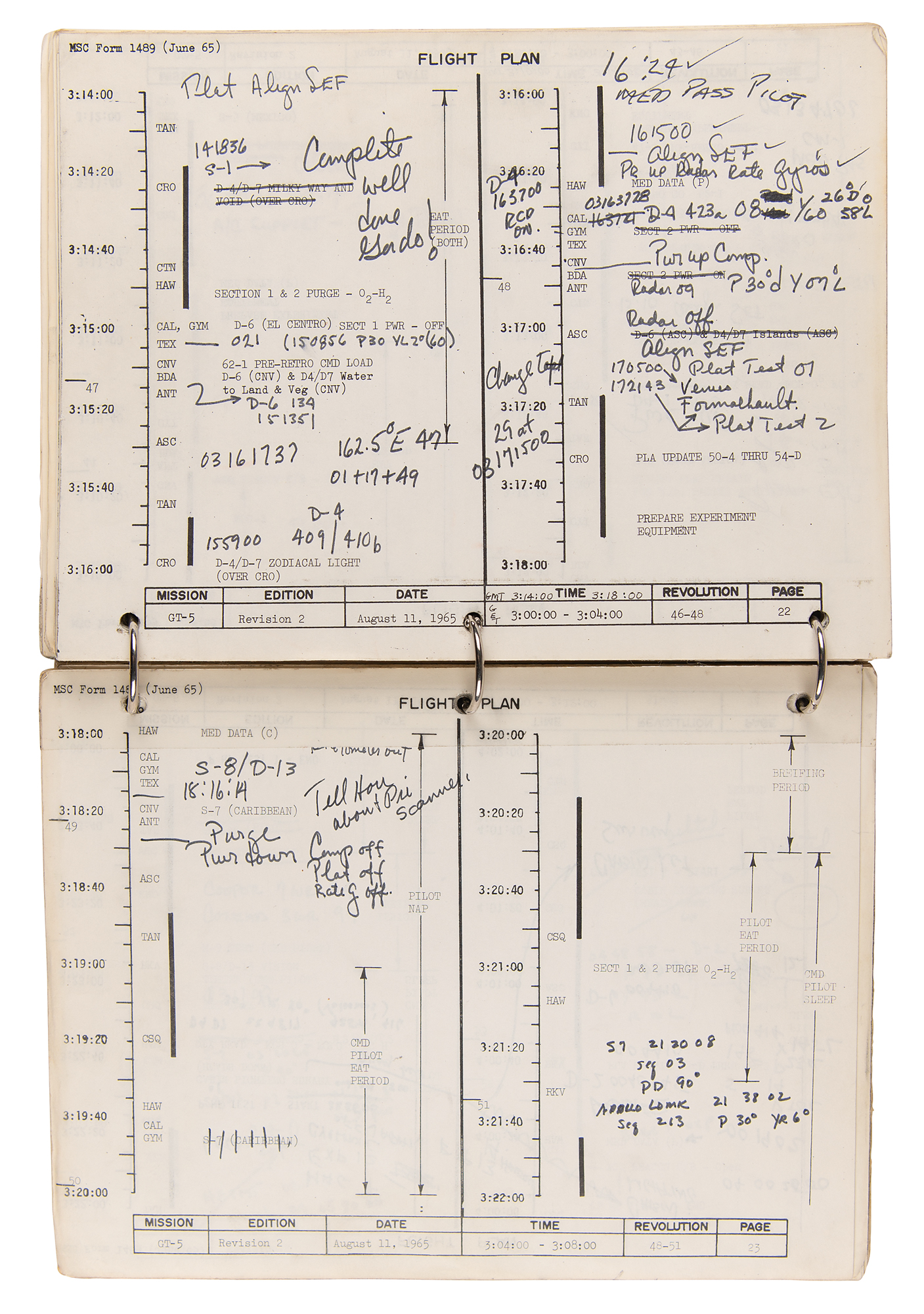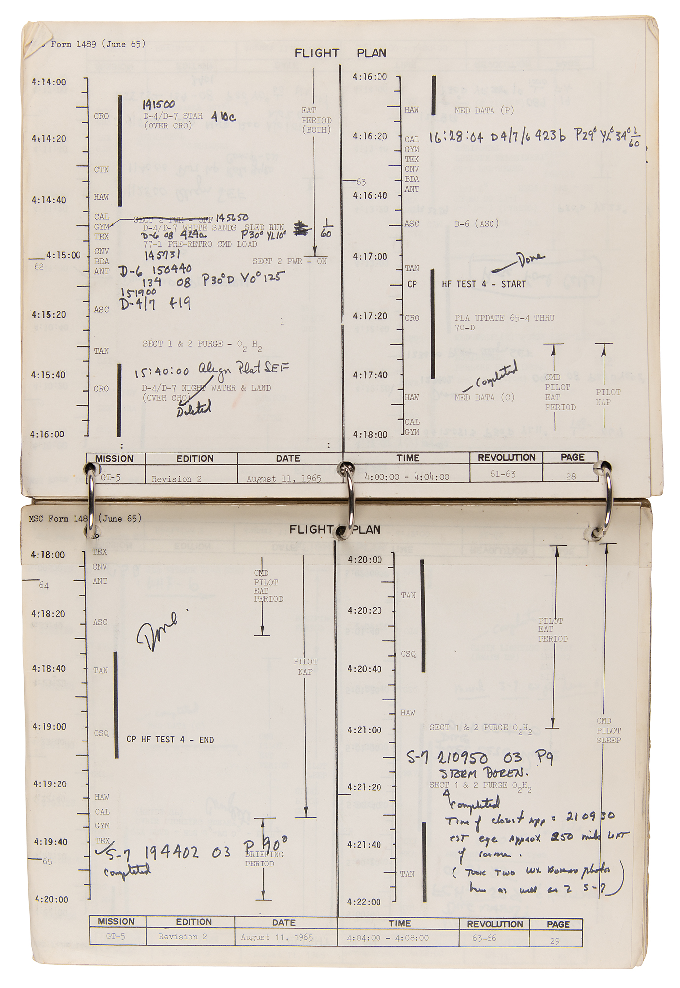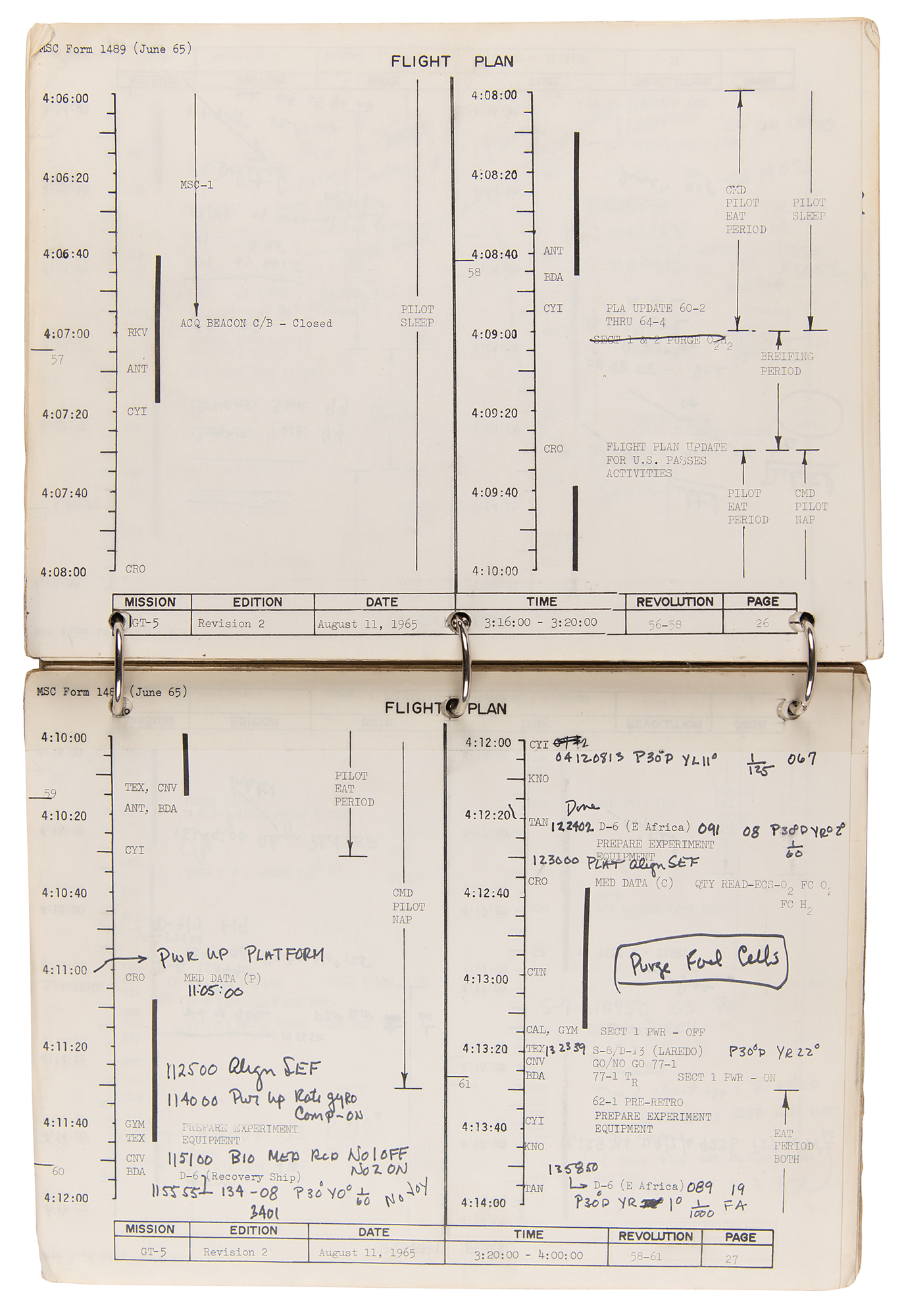 Gemini 5 Flown Flight Plan with Extensive In-Flight Notations by Charles Conrad