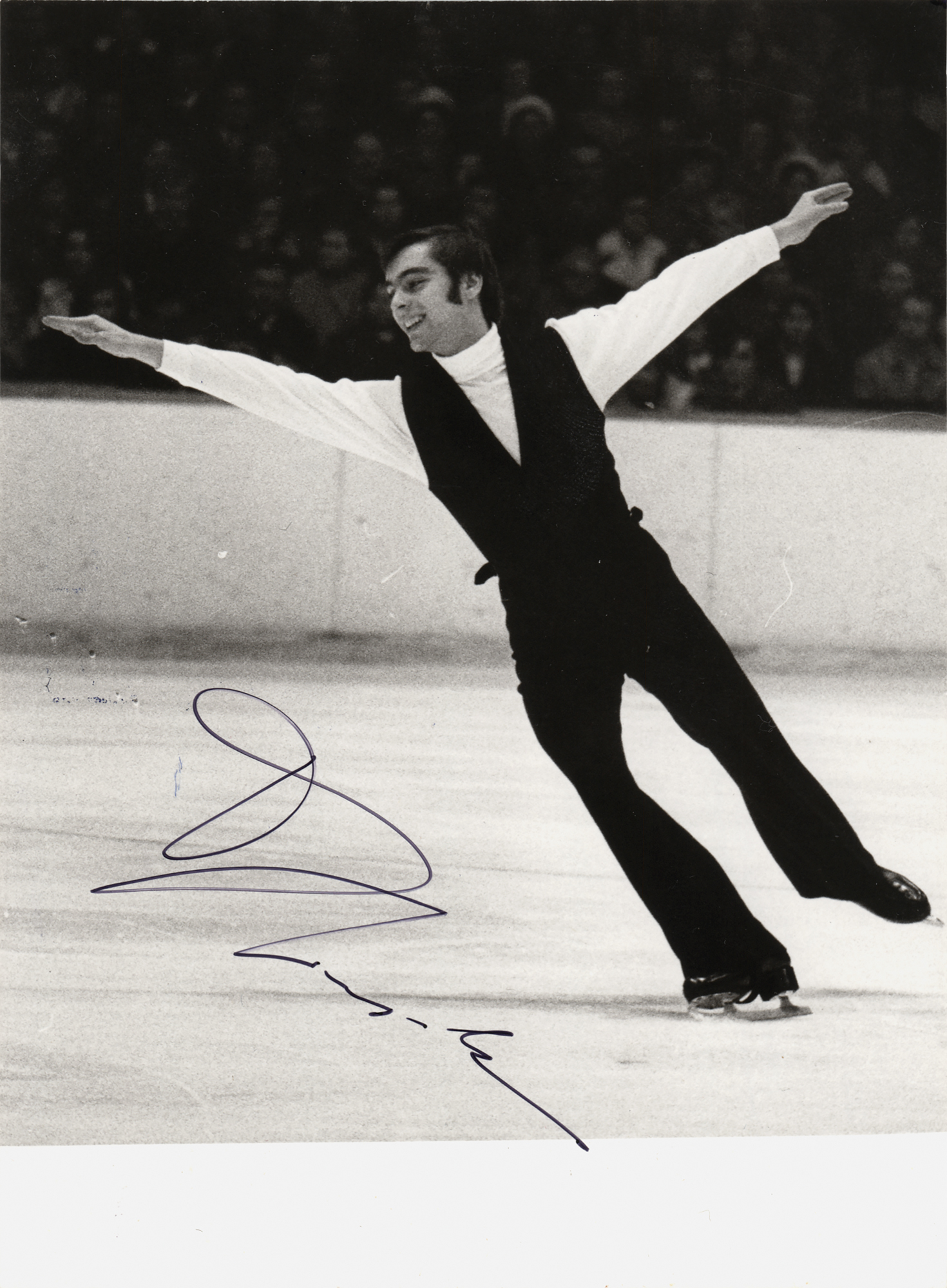 Slovak figure skater (1951–1989) who was the 1972 Olympic champion, a three-time World champion (1971–1973), and a five-time European champion, representing Czechoslovakia. Rare glossy 5 x 7 photo of celebrated figure skater Ondrej Nepela on the ice, signed in black felt tip. In fine condition.