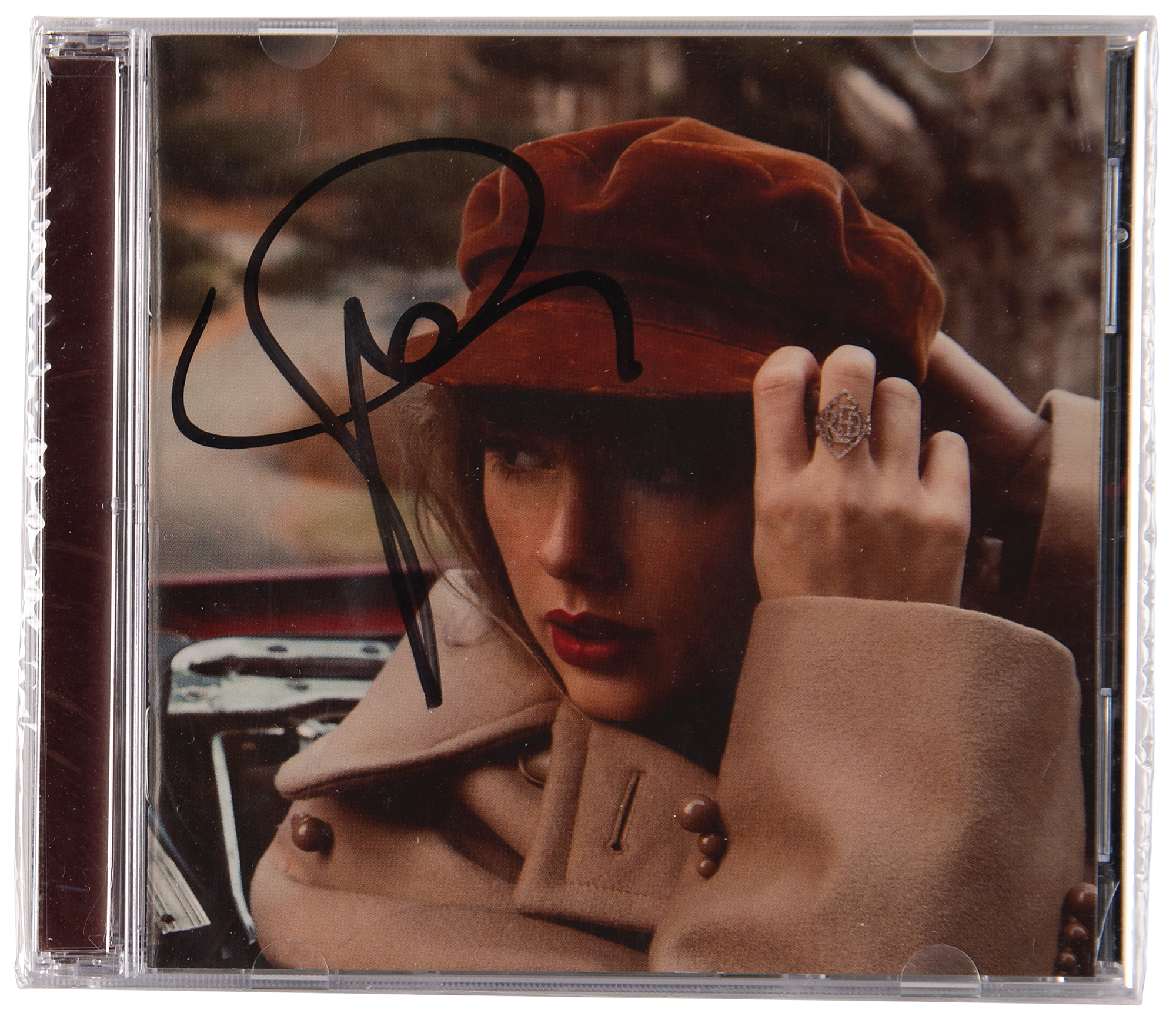 CD for Taylor Swift's second re-recorded album Red (Taylor's Version), boldly signed on the front cover in black felt tip. Resealed and in very fine condition. The CD is included.