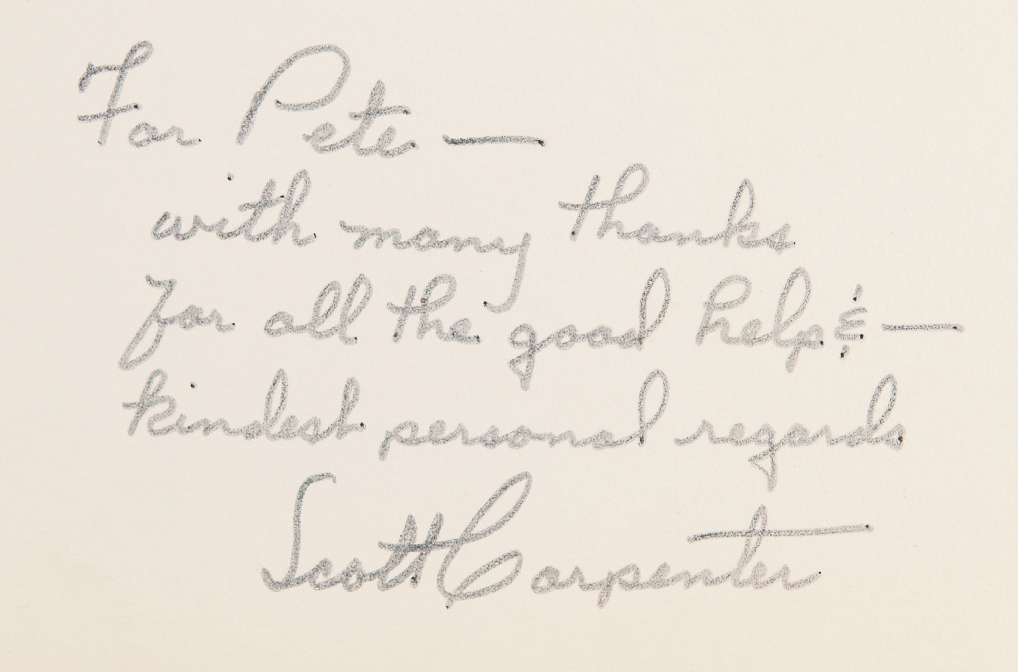 Originates from the personal collection of NASA employee John ‘Pete’ Peterson, who served in various capacities of media relations at NASA and the Manned Spacecraft Center from about 1961 to about 1973. He first served as the head of News and Media Relations, reporting to Paul Haney, and later as a special assistant to several of the chief astronauts. Due to his military and media background—Peterson was a retired Army captain who served in both WWII and the Korean wars—he befriended and became close to several of the Mercury, Gemini, Apollo, and Skylab astronaut crews, which accounts for many of the friendly personal dedications inscribed on these photographs.