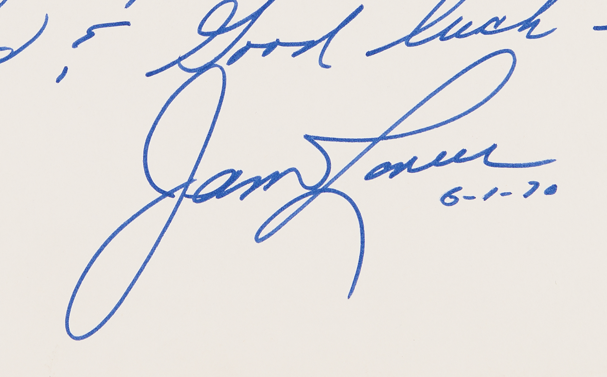 Originates from the personal collection of NASA employee John ‘Pete’ Peterson, who served in various capacities of media relations at NASA and the Manned Spacecraft Center from about 1961 to about 1973. He first served as the head of News and Media Relations, reporting to Paul Haney, and later as a special assistant to several of the chief astronauts. Due to his military and media background—Peterson was a retired Army captain who served in both WWII and the Korean wars—he befriended and became close to several of the Mercury, Gemini, Apollo, and Skylab astronaut crews, which accounts for many of the friendly personal dedications inscribed on these photographs.