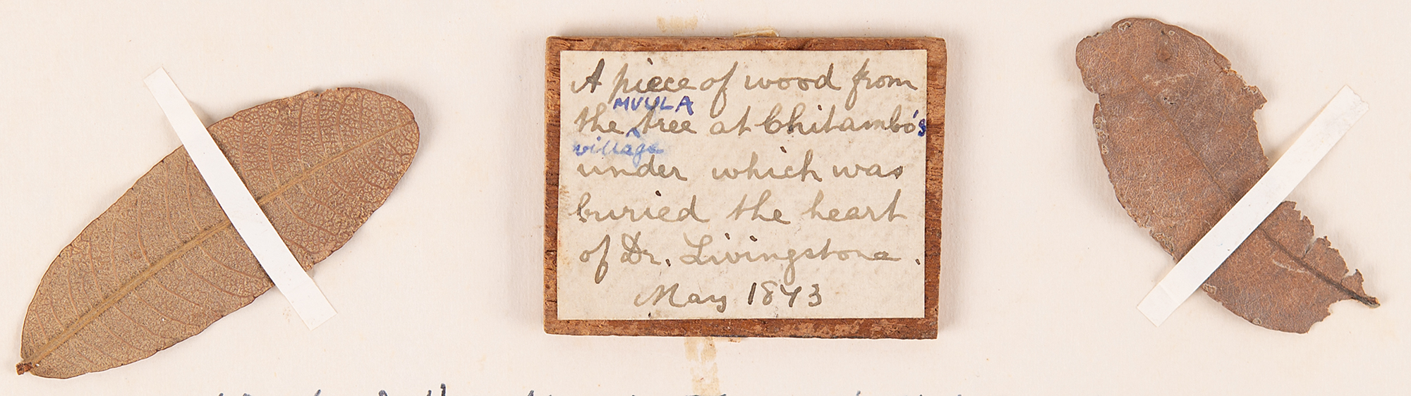 David Livingstone Autograph Letter Signed with Wood and Leaves "from the tree under which was buried the heart of Dr. Livingstone"