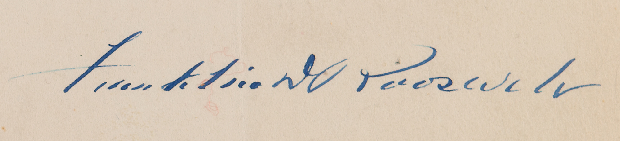 Autograph letters by Roosevelt are generally scarce, and those mentioning his polio-induced paralysis are exceedingly so. Many Americans were not even aware of Roosevelt's disability?from the time he reentered the political stage after contracting polio, he insisted that reporters not write about his affliction and his public appearances were carefully choreographed to avoid any appearance of weakness. As such, few photographs of him using wheelchairs or leg braces exist, and any mention of his infirmity is remarkably rare.