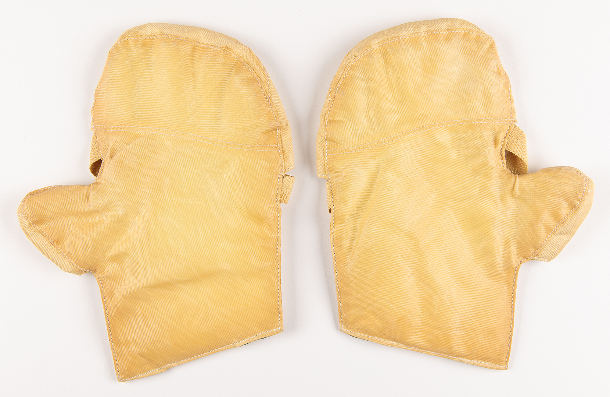 Developed by space suit maker ILC-Dover in response to astronauts' reports that their hands got cold during EVAs, these insulated thermal mittens could be fitted over their outer gloves to temporarily retain warmth. The slip-over design and Velcro restraints made them easily removed for tasks requiring finger dexterity. Although astronauts tested mittens like these on the STS-63 mission in 1995, they were never adopted as a standard piece of equipment for Shuttle flights.