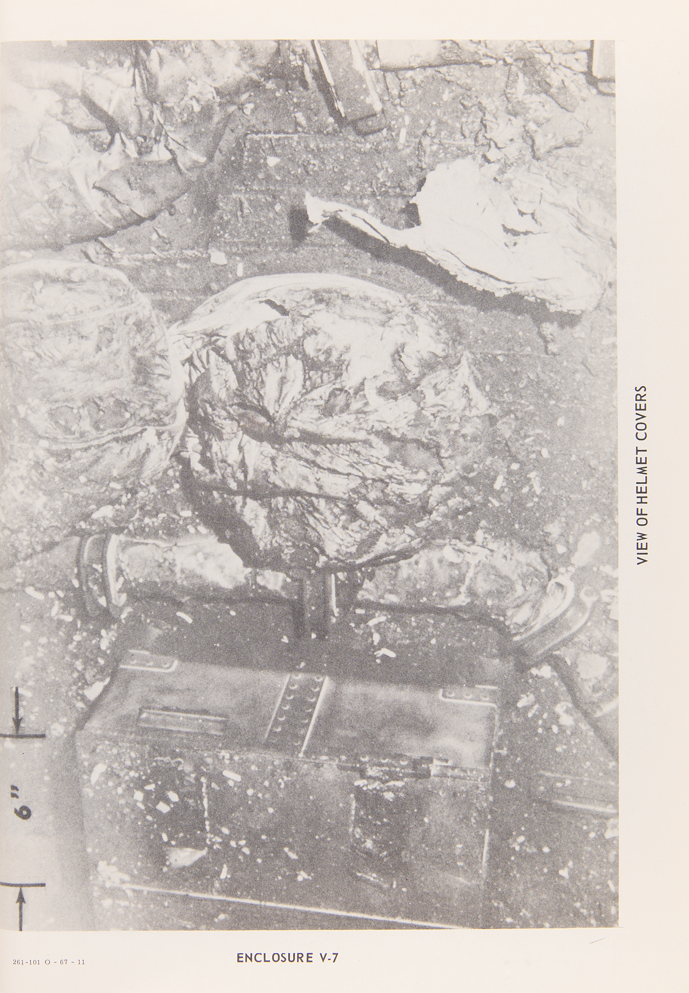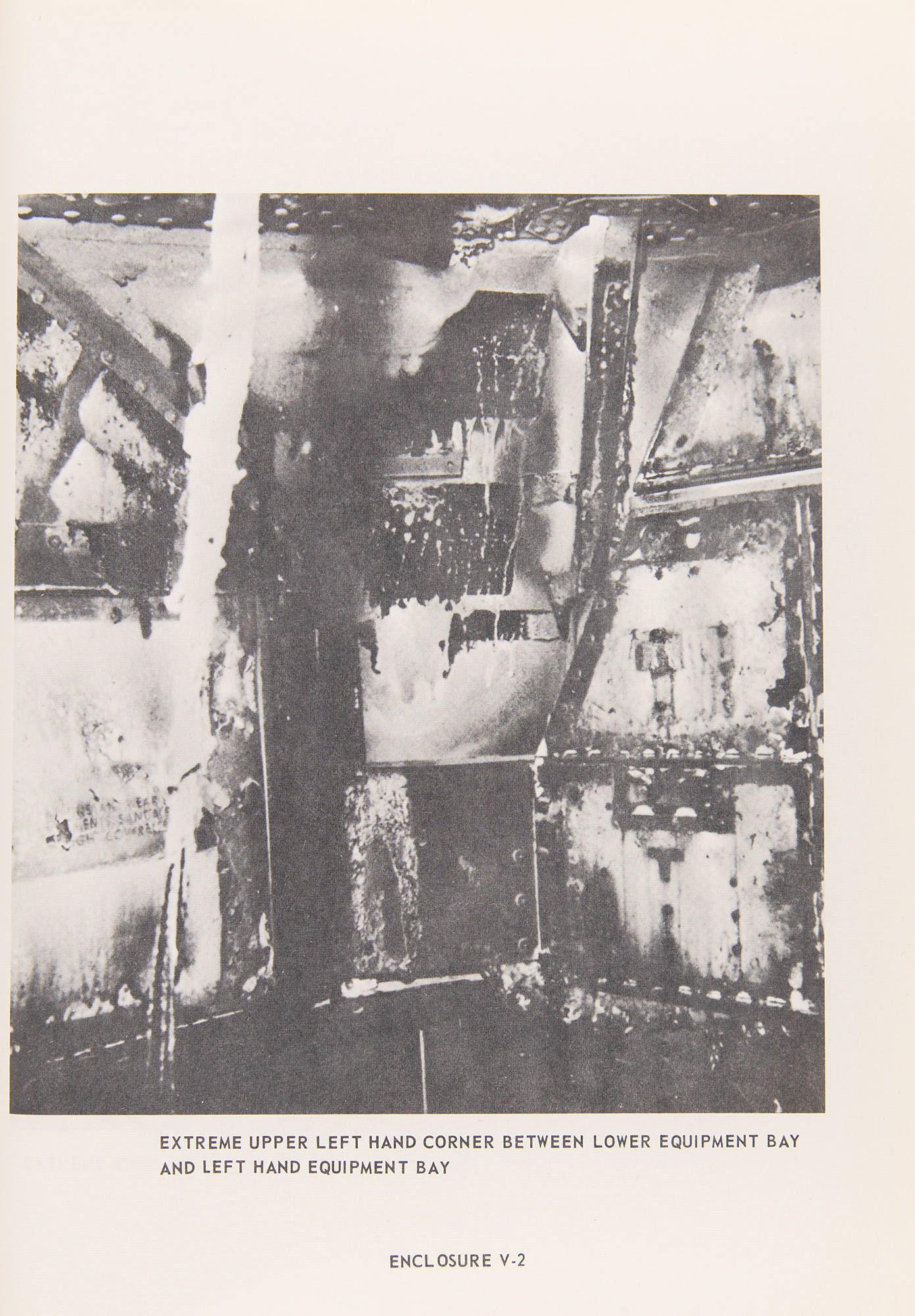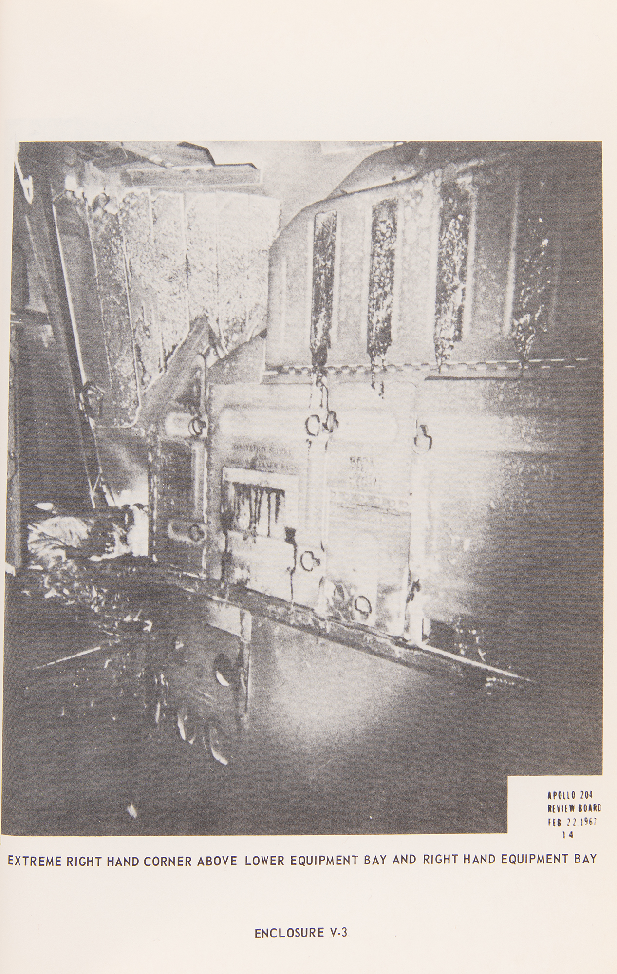 Scarce NASA-printed manual for the “Report of Apollo 204 Review Board to the Administrator National Aeronautics and Space Administration,” 8 x 10.5, totaling approximately 168 pages (including plates and fold-out diagrams related to the Apollo 1 accident and capsule), April 5, 1967. The review board was charged with the responsibility of reviewing the circumstances surrounding the Apollo 1 (AS–204) accident, reporting its findings relating to the cause of the accident, and formulating recommendations so that inherent hazards are reduced to a minimum. The manual consists of six parts: Authority; Biographies; Board; History of the Accident; Investigation and Analysis; and Findings, Determinations and Recommendations. Includes two bound appendices, "Appendix D, Panels 6 thru 10" and "Appendix D, Panel 11," containing over 300 pages of supplementary data. In overall fine condition, with ink notations to covers and sunning to spines.