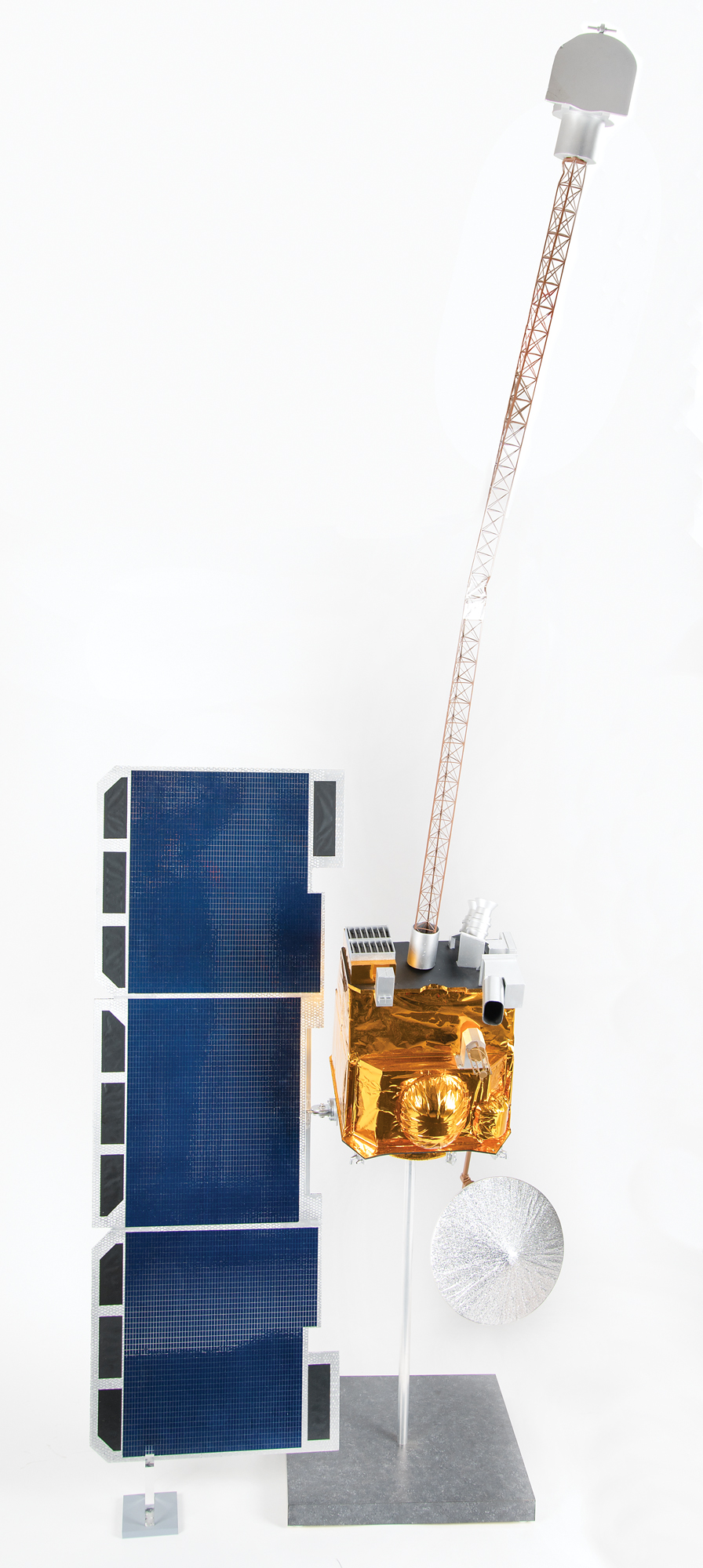A brilliantly made replica of the historic 2001 Mars Odyssey orbiter. Developed by NASA and contracted out to Lockheed Martin, the orbiter was designed to use spectrometers and a thermal imager to detect evidence of past or present water and ice, as well as study the planet's geology and radiation environment. The mission, which was named as a tribute to Arthur C. Clarke, evoking the name of his and Stanley Kubrick's 1968 film 2001: A Space Odyssey, was a rousing success across several fronts.