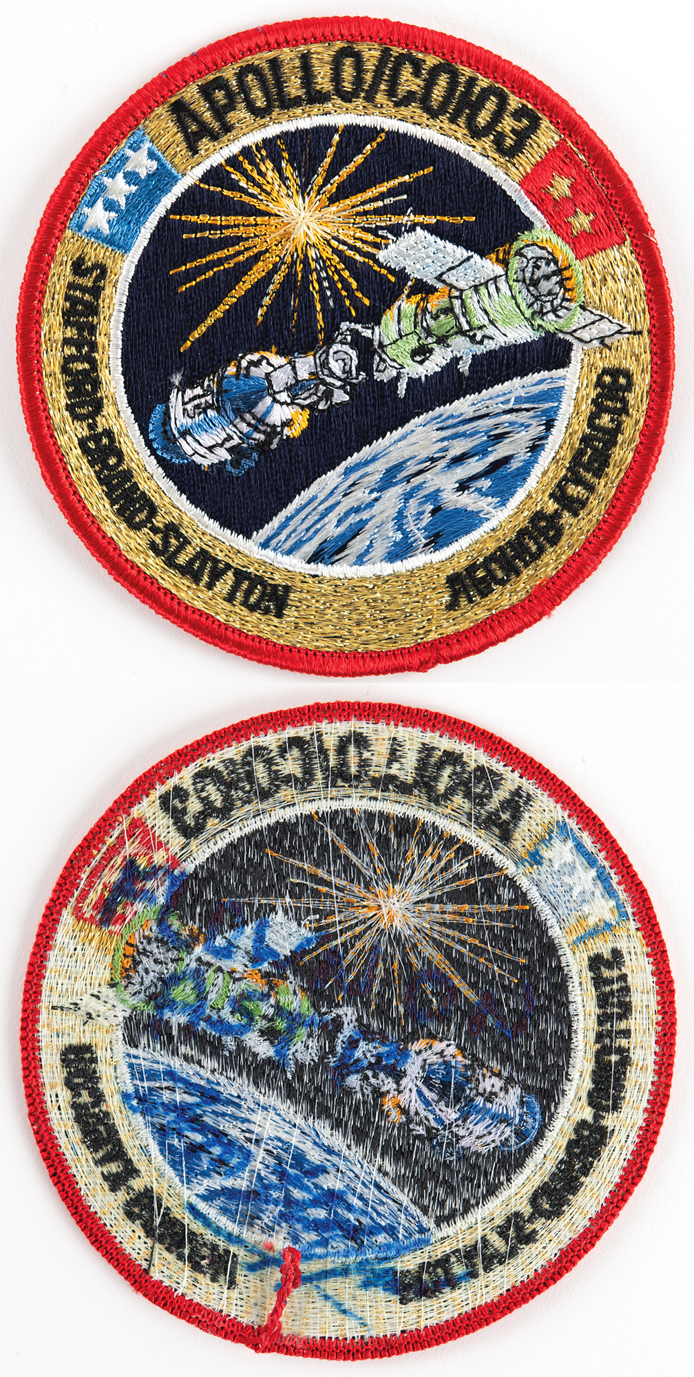ASTP crew emblem patch flown in the Apollo Command Module during the historic USA–USSR joint mission