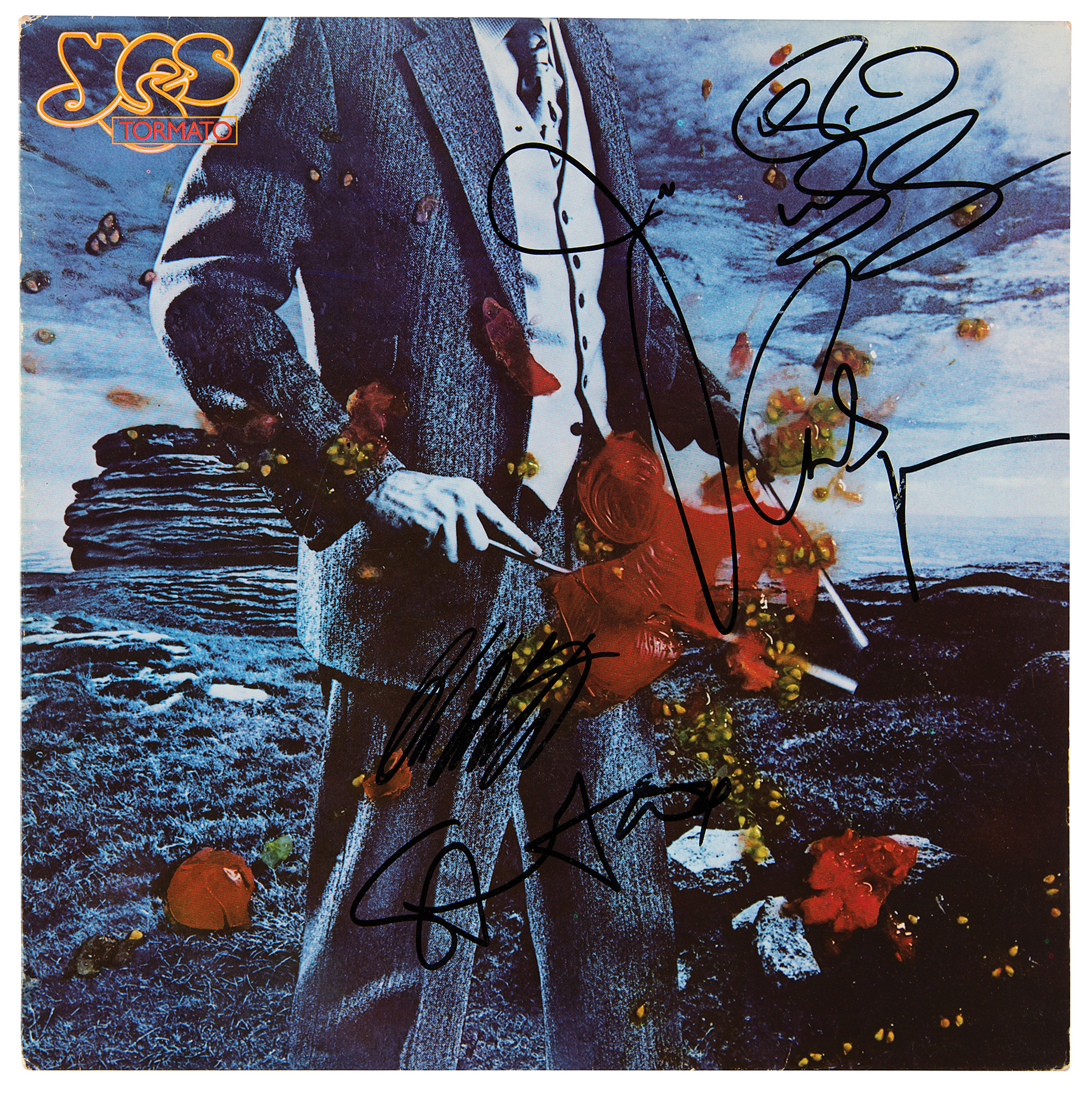 Tormato album signed on the front cover in black felt tip by Jon Anderson, Rick Wakeman, Chris Squire, Steve Howe, and Alan White. In fine condition. The record is included.