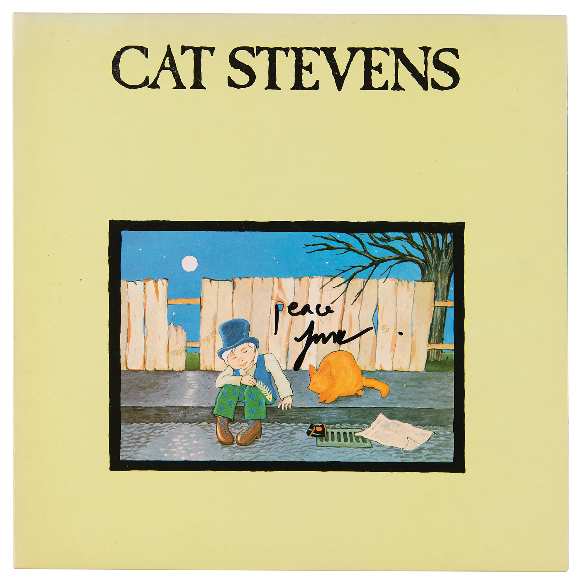 Teaser and the Firecat album signed on the front cover in black felt tip by Cat Stevens, "Peace, Yusuf." In fine condition. The record is included.