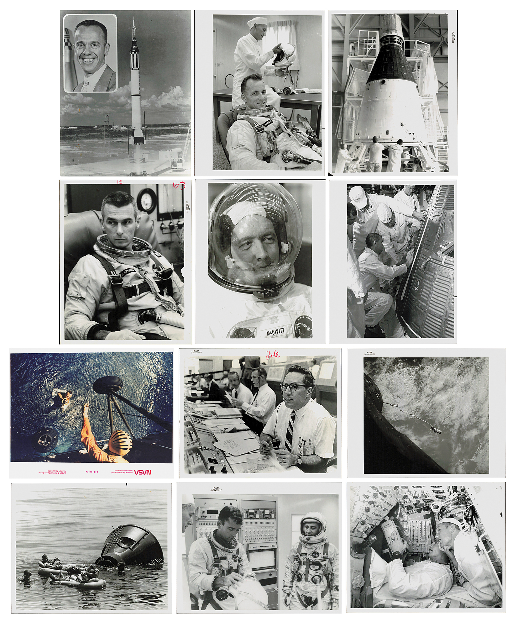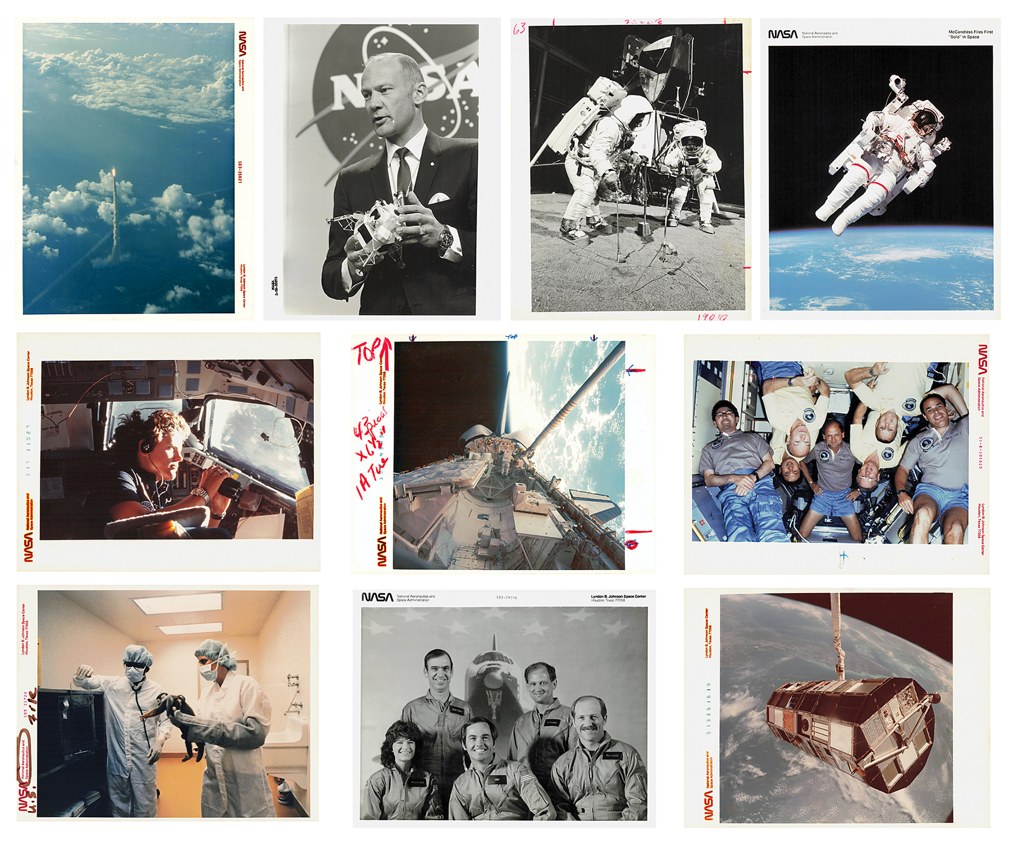 Finding a set of this great scale is exceedingly rare. Each print bears official NASA markings, whether it be the official image serial number, NASA caption text, or Kodak watermarks. This collection contains several highly sought-after ?red-numbered? original photos.