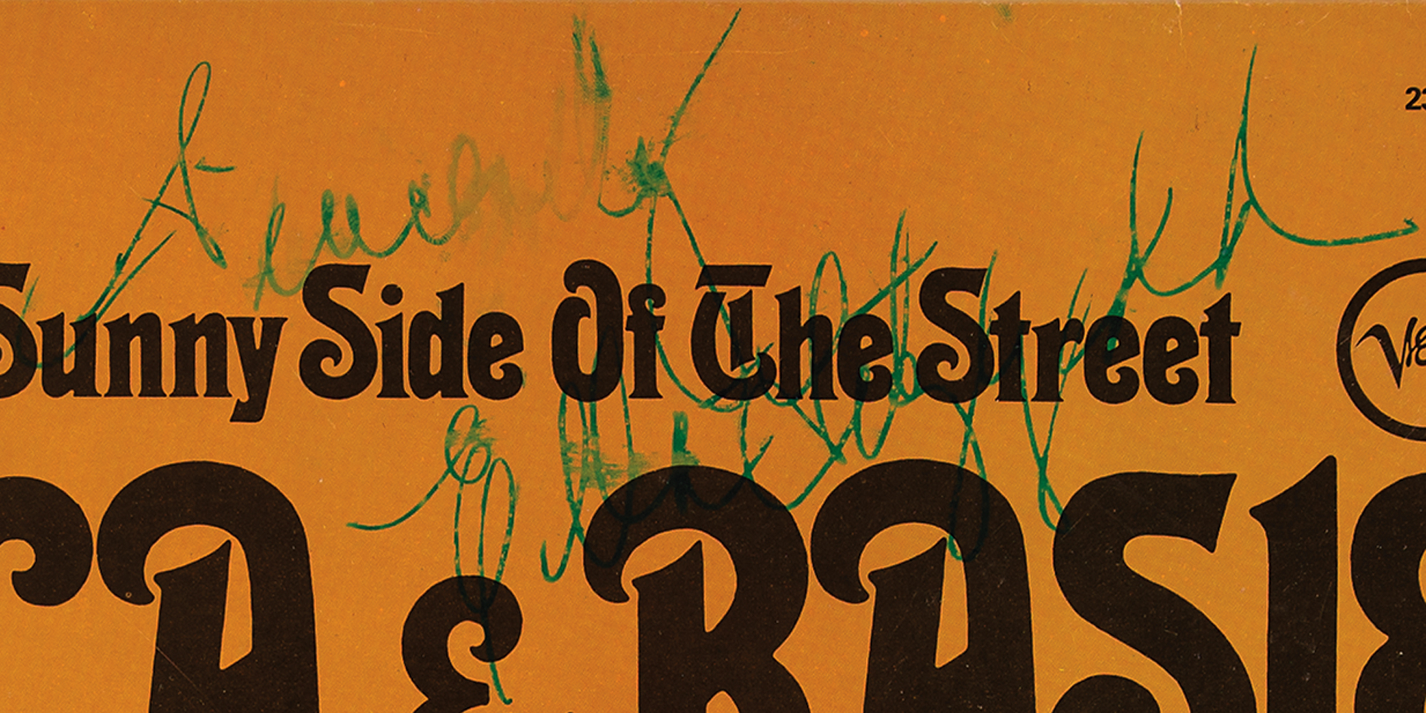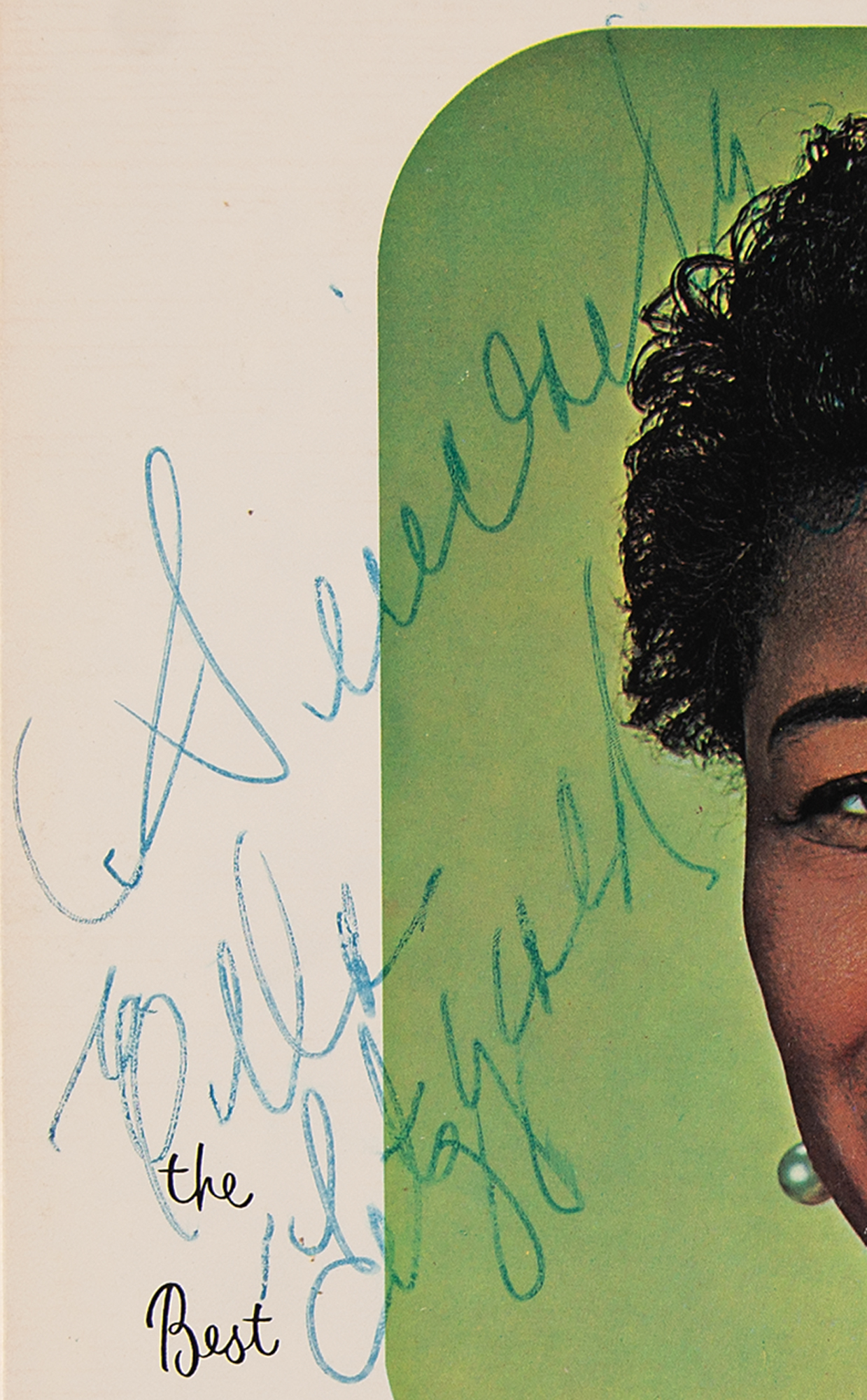 Group of five albums signed by legendary jazz vocalist Ella Fitzgerald, including: The George & Ira Gershwin Songbook; Jazz at the Philharmonic; The Best of Ella Fitzgerald; The Best of Ella Fitzgerald, Vol. II; and Ella & Basie: On the Sunny Side of the Street. Each is signed on the front in ink by Fitzgerald, and all records are included. In overall very good to fine condition, with significant smudging to the Basie title and some irregular ink adhesion to the other autographs.